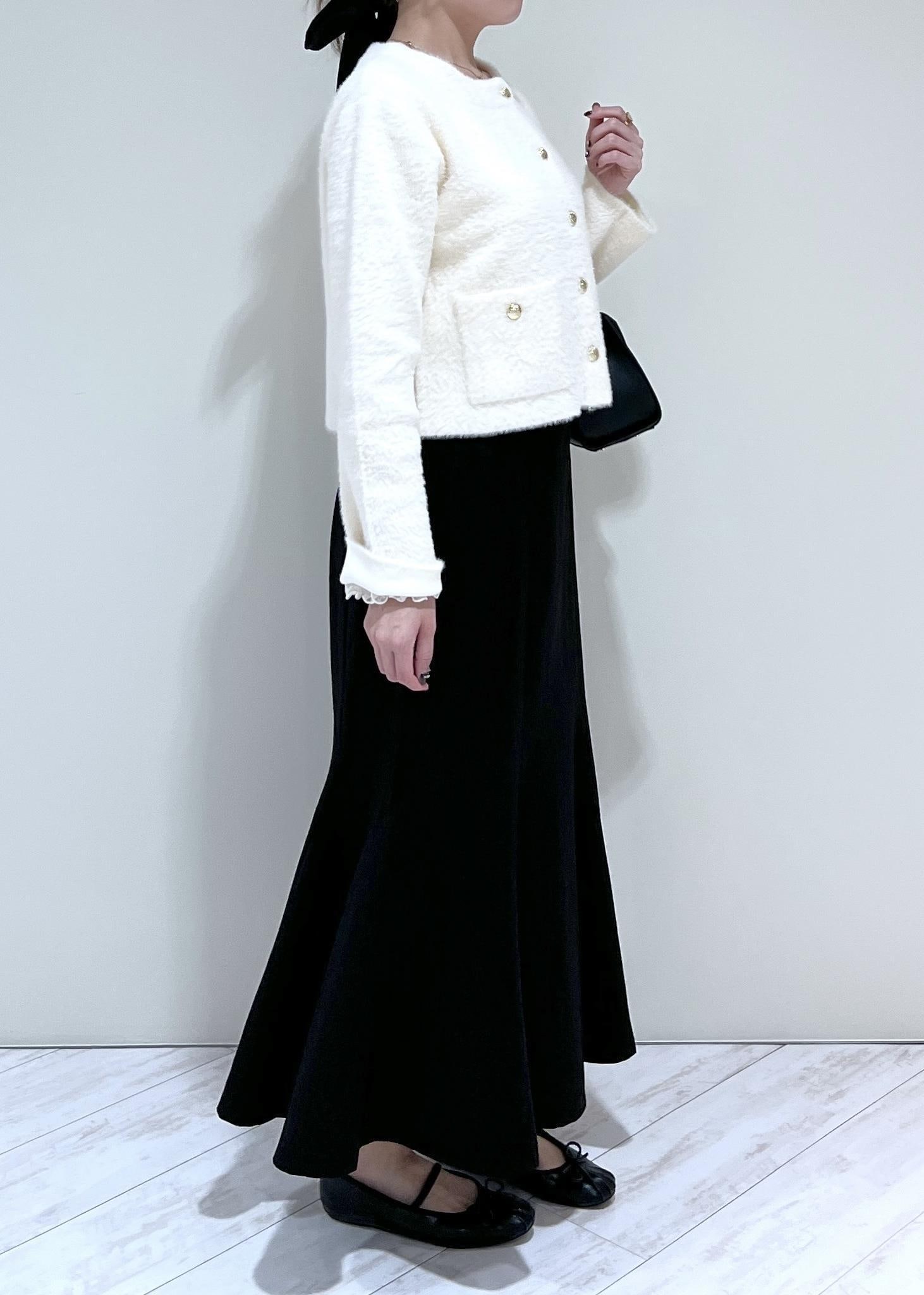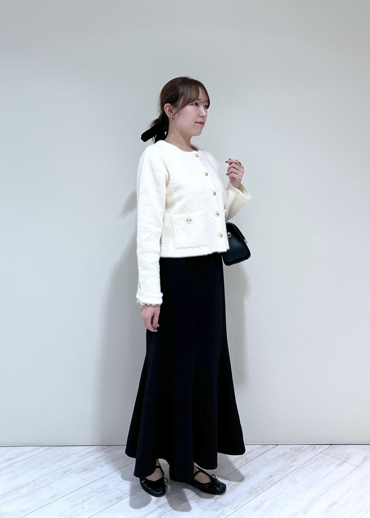 表面はもこもこであたたかみのあるデザインです!裏はもこもこしていないので着ぶくれする事なくインナーを着られます◎着丈は短過ぎず長過ぎない腰上ほどなので、どんなボトムやワンピースにも合わせやすいです。