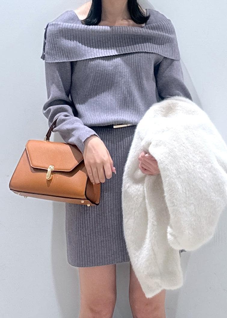 VISアシメオフショルリブニット美シルエットワンピース/着丈が選べるグレー / FS¥8,899レビュー肉厚な生地感で体のラインを拾いにくい◎