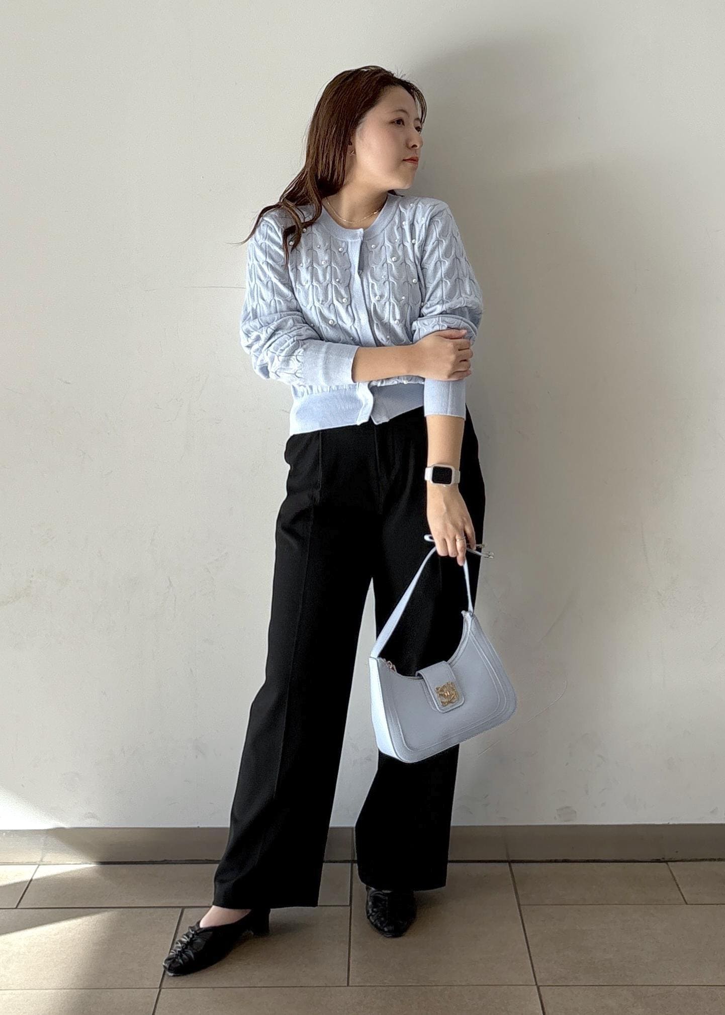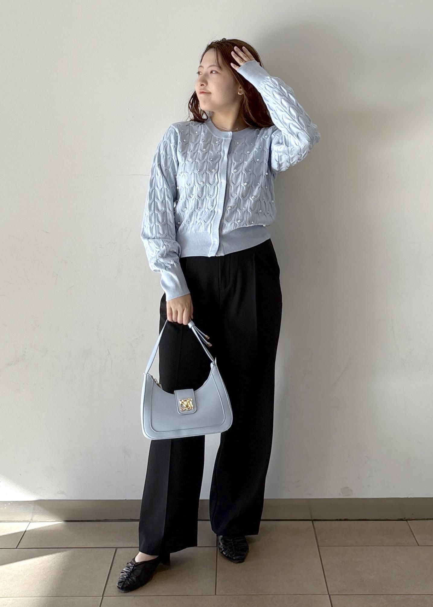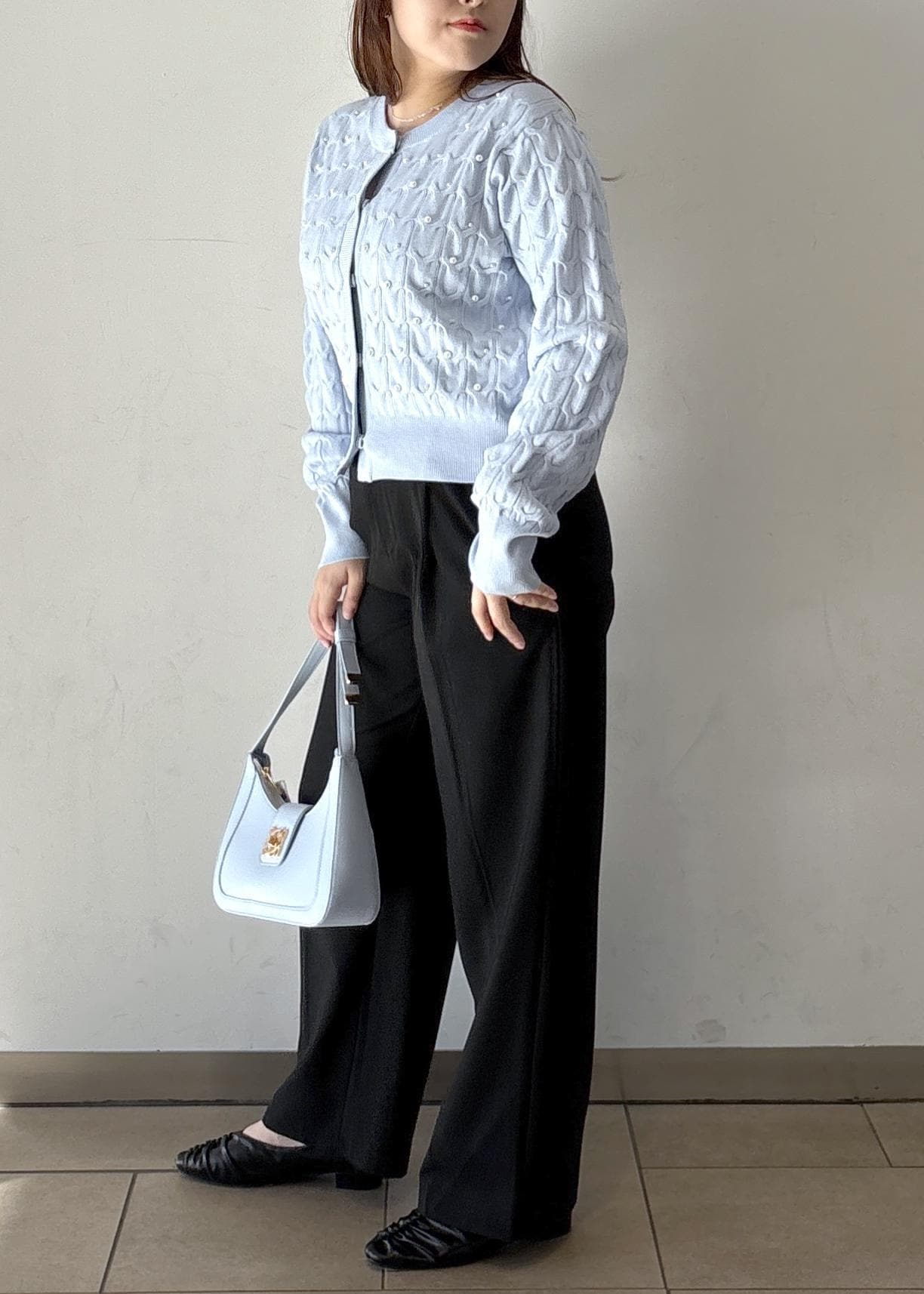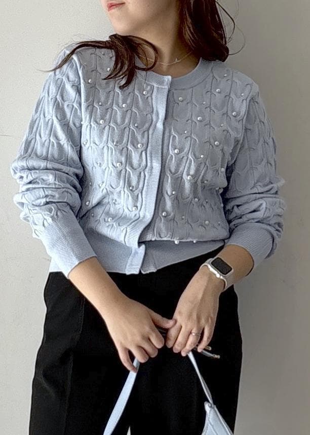 VISパールケーブルカーディガンサックス / F¥6,589レビューパールがかわいいカーディガン!