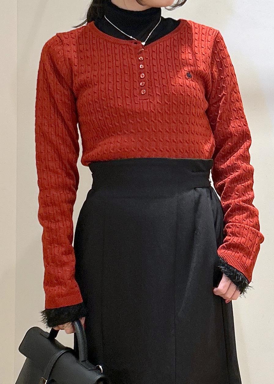 VIS【POLO BCS】VIS別注ヘンリーネックミニケーブルニットトップスレッド系 / F¥6,600レビューヘンリーネックと多釦で今っぽく着られます。