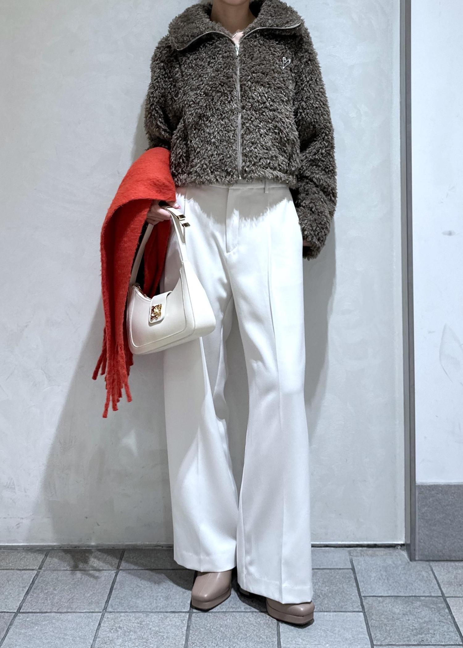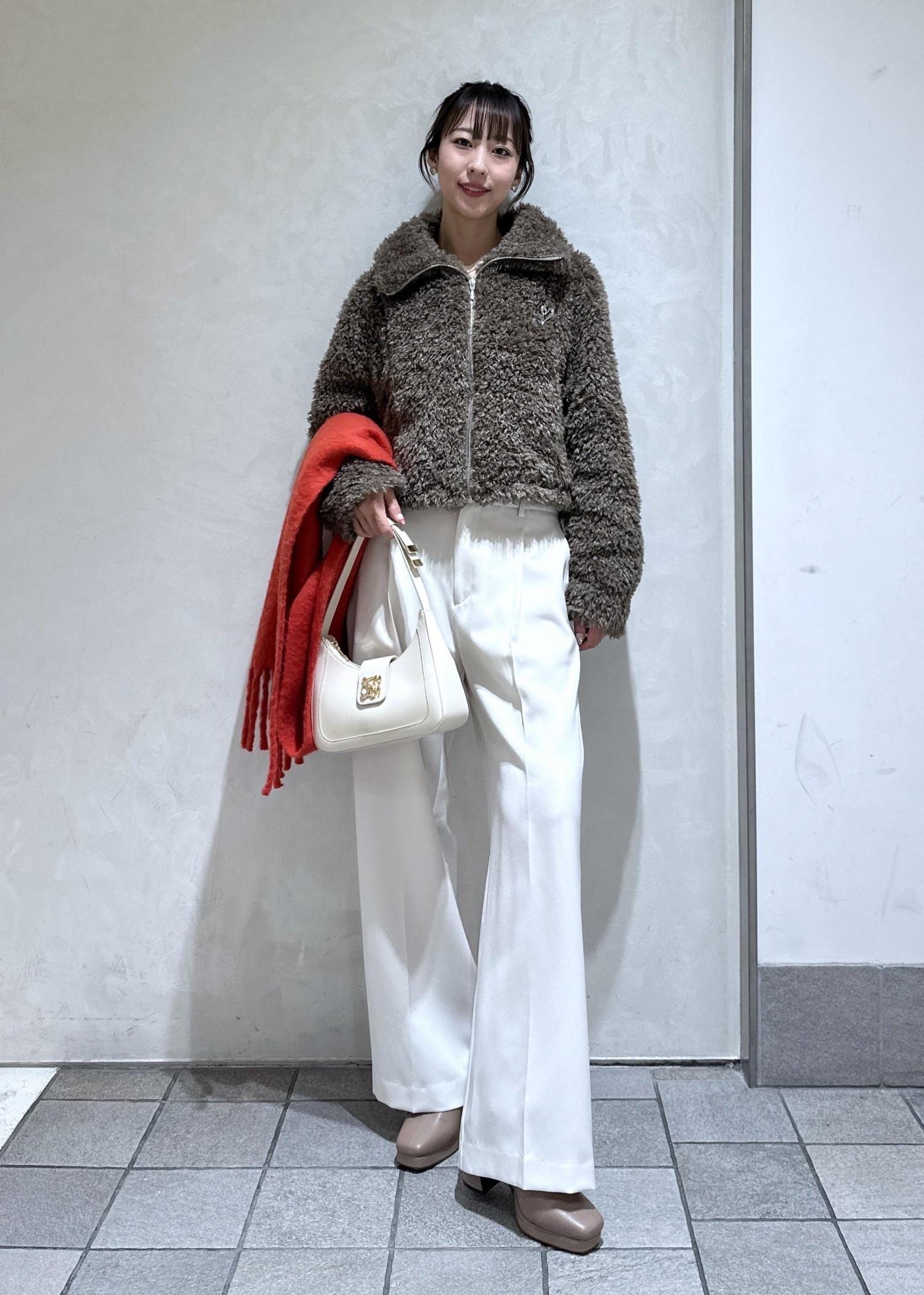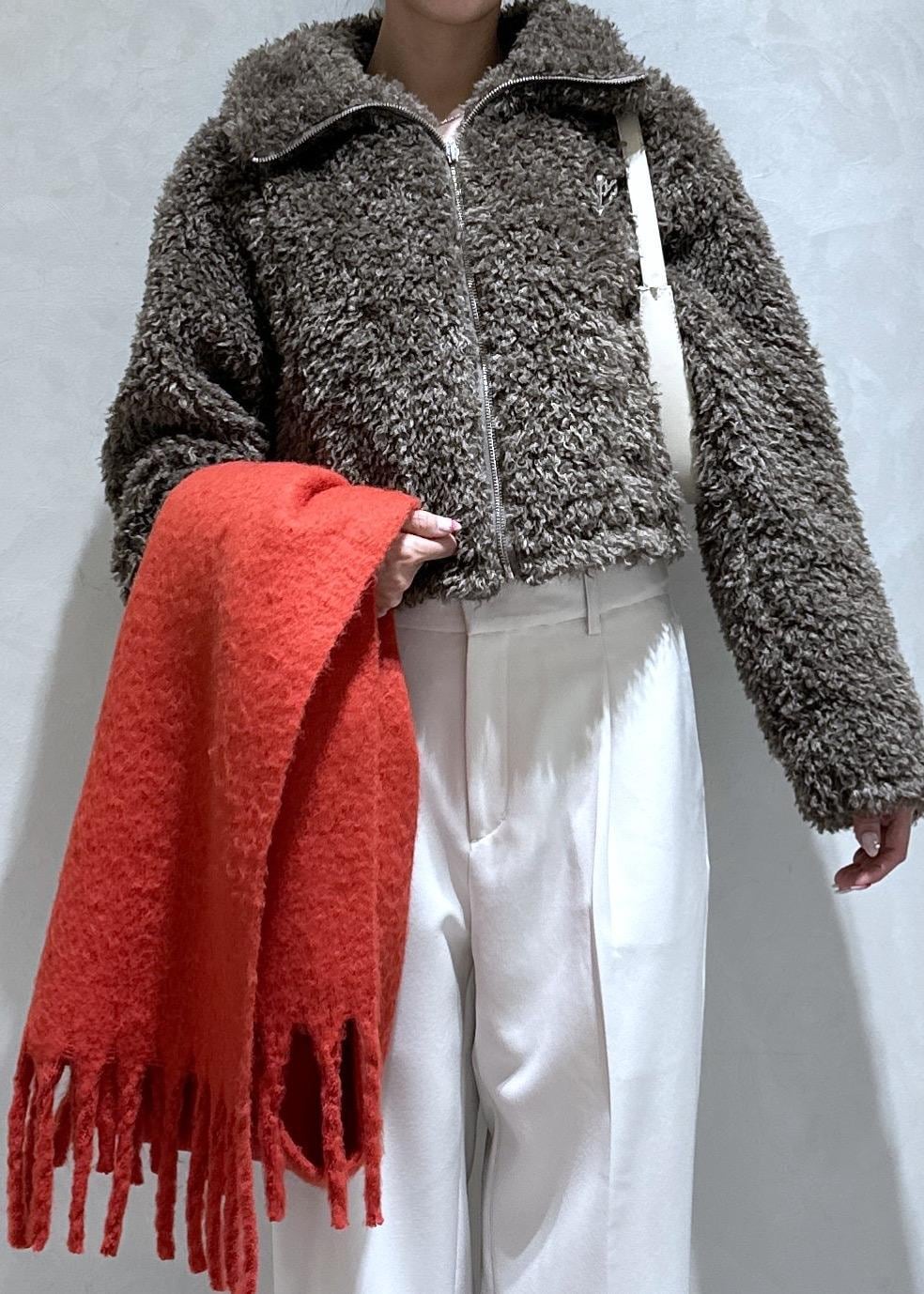 VISブローチ付きアソートファーブルゾンブラウン / F¥14,080レビュー165cmの私が着用してお尻にかからない丈間になりました!ショート丈なのでどんなお洋服にも合わせやすいですよ♪上まで閉められるタイプでマフラーいらずで暖かいです!