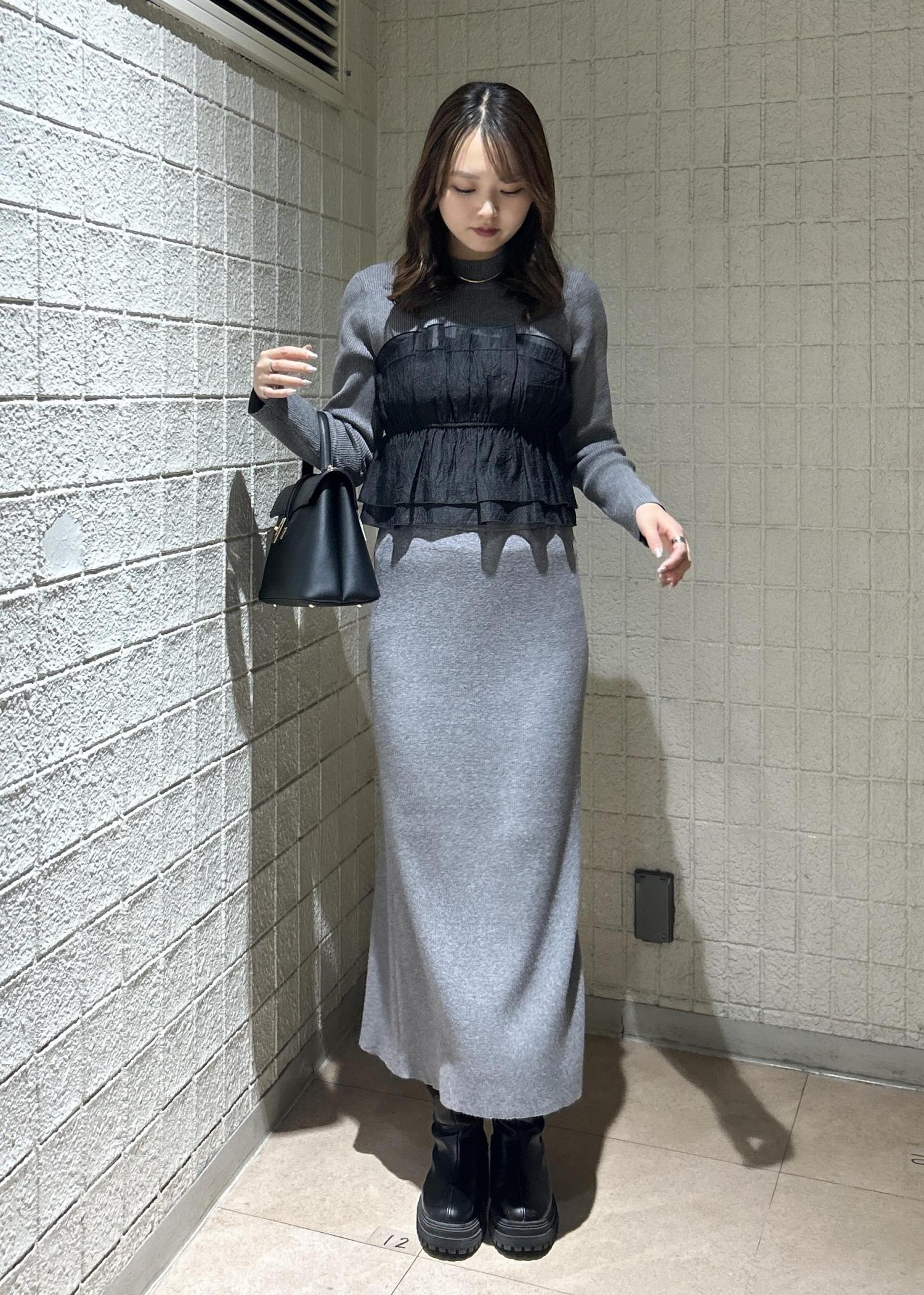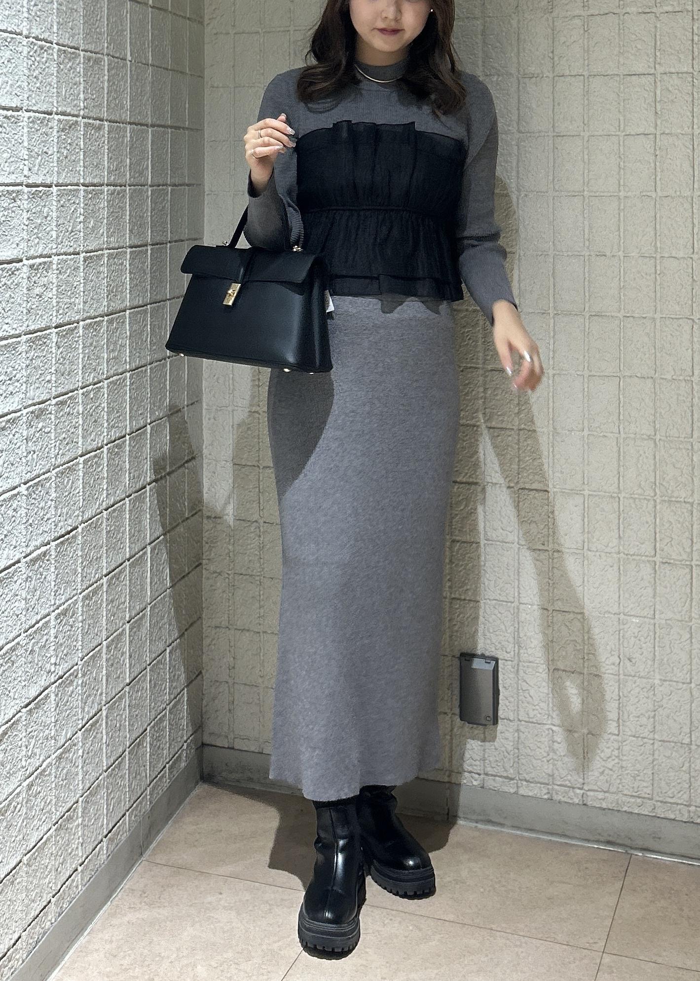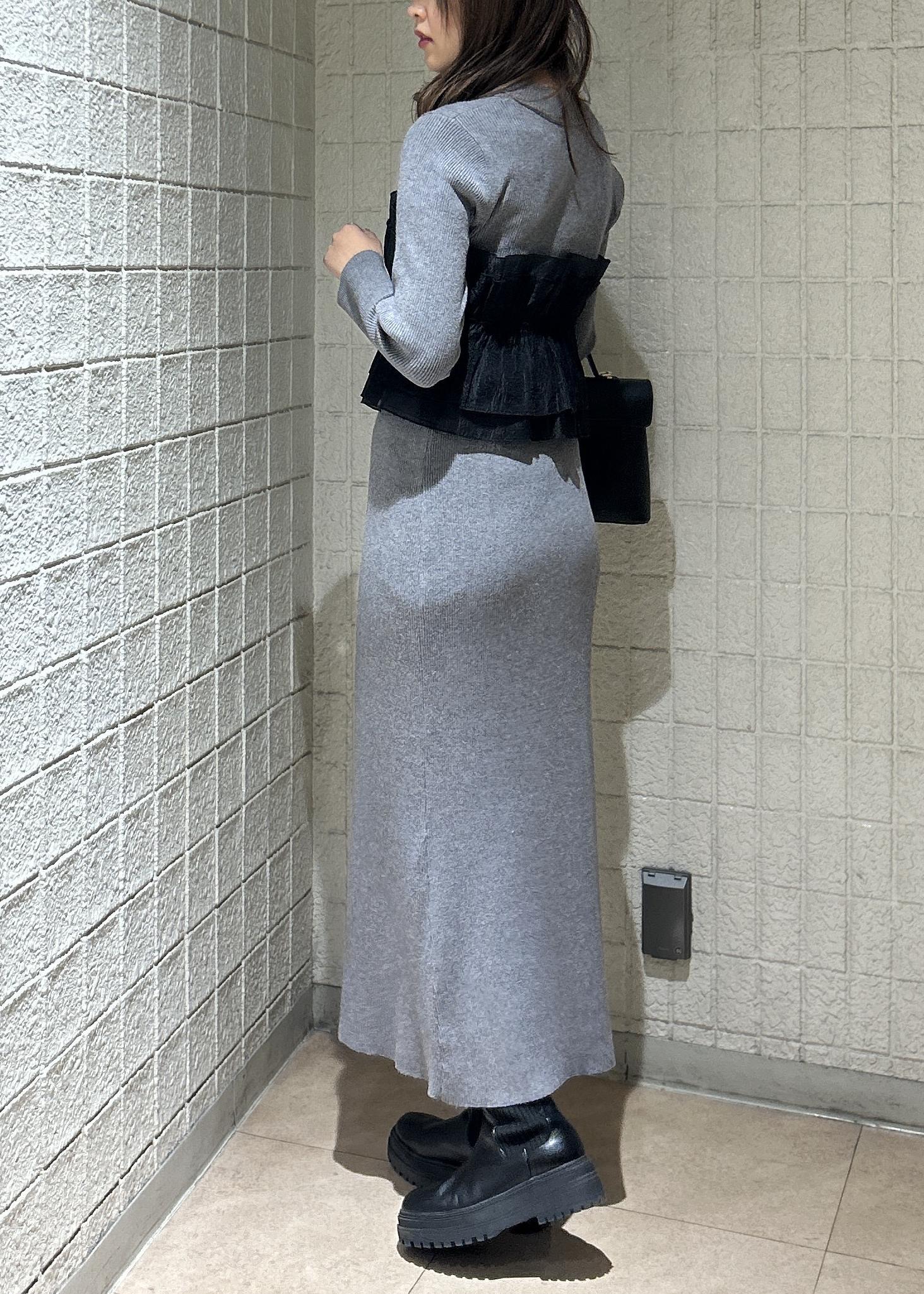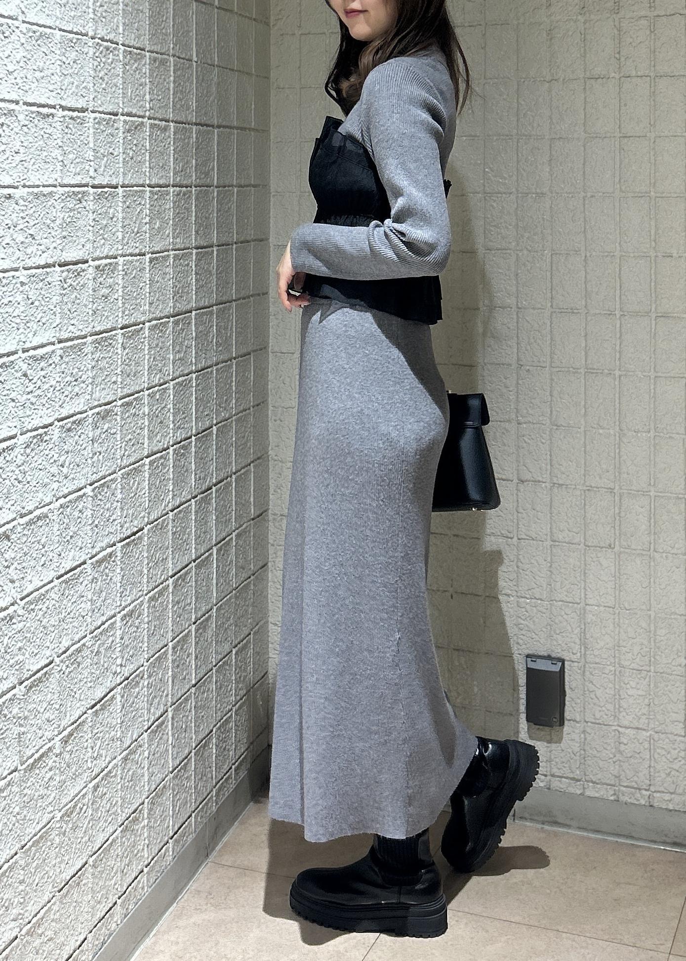 VISリブニットスカート/セットアップ対応チャコール / F¥5,929レビューもちっと柔らかいニット素材でそこまでピタッとしすぎてないので体のラインを拾いすぎる心配なしでした!