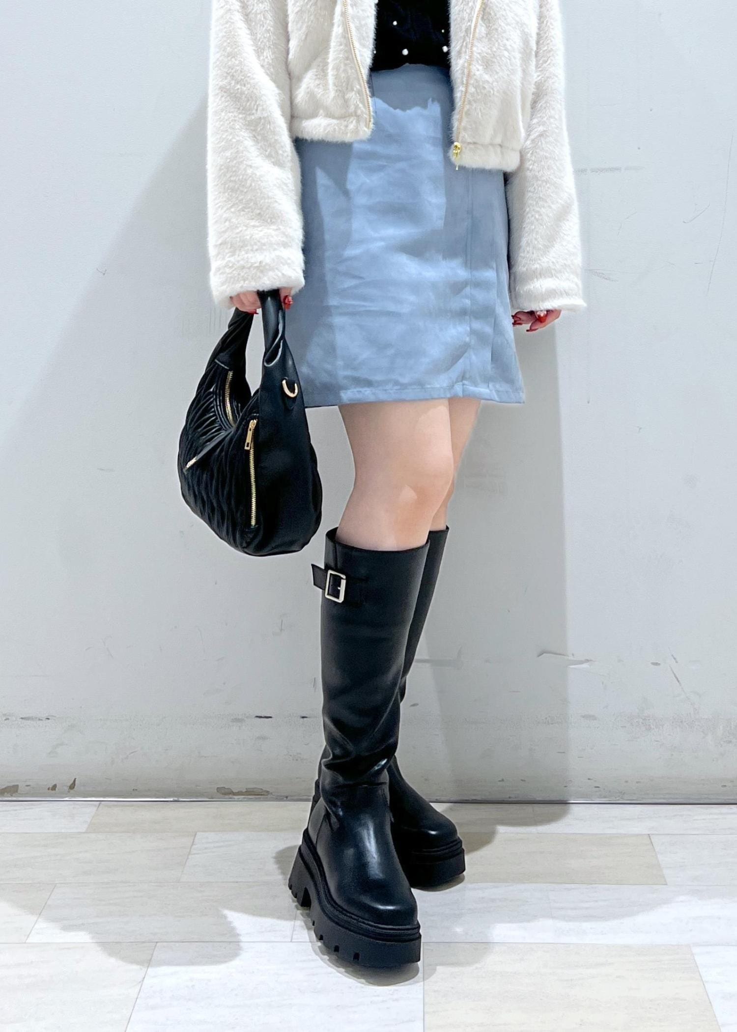 足首もシェイプされていて、すっきりした印象で履けるロングブーツです。