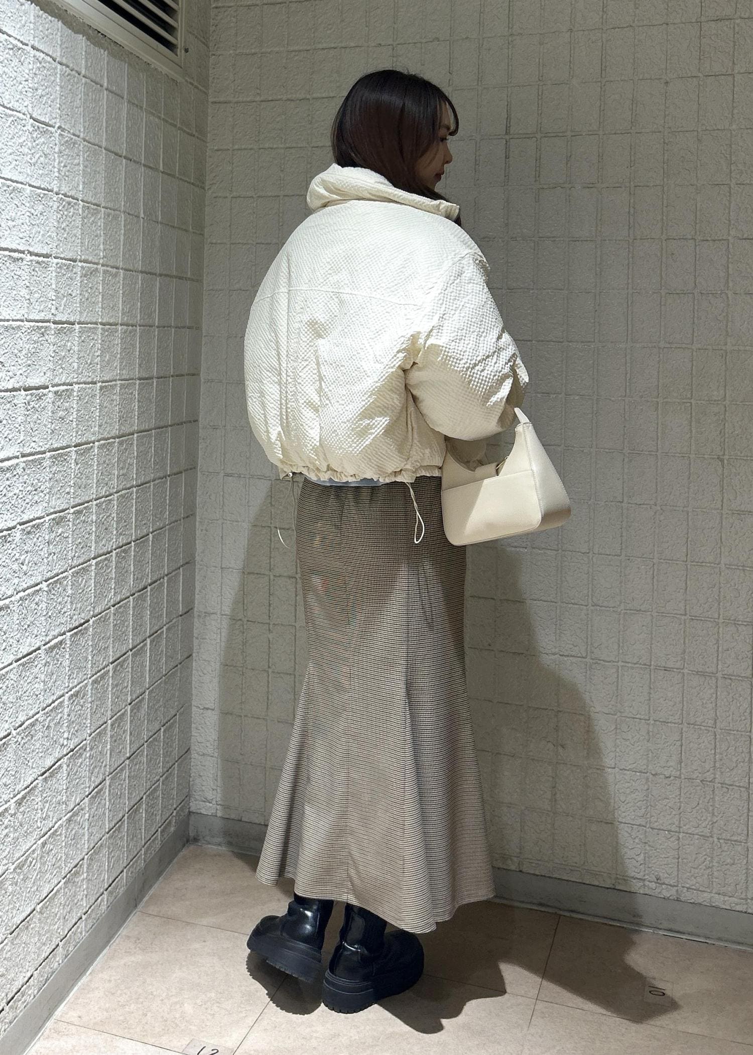 丈感はくるぶしから少し上の長さでブーツで合わせた時バランスよく履ける長さです。