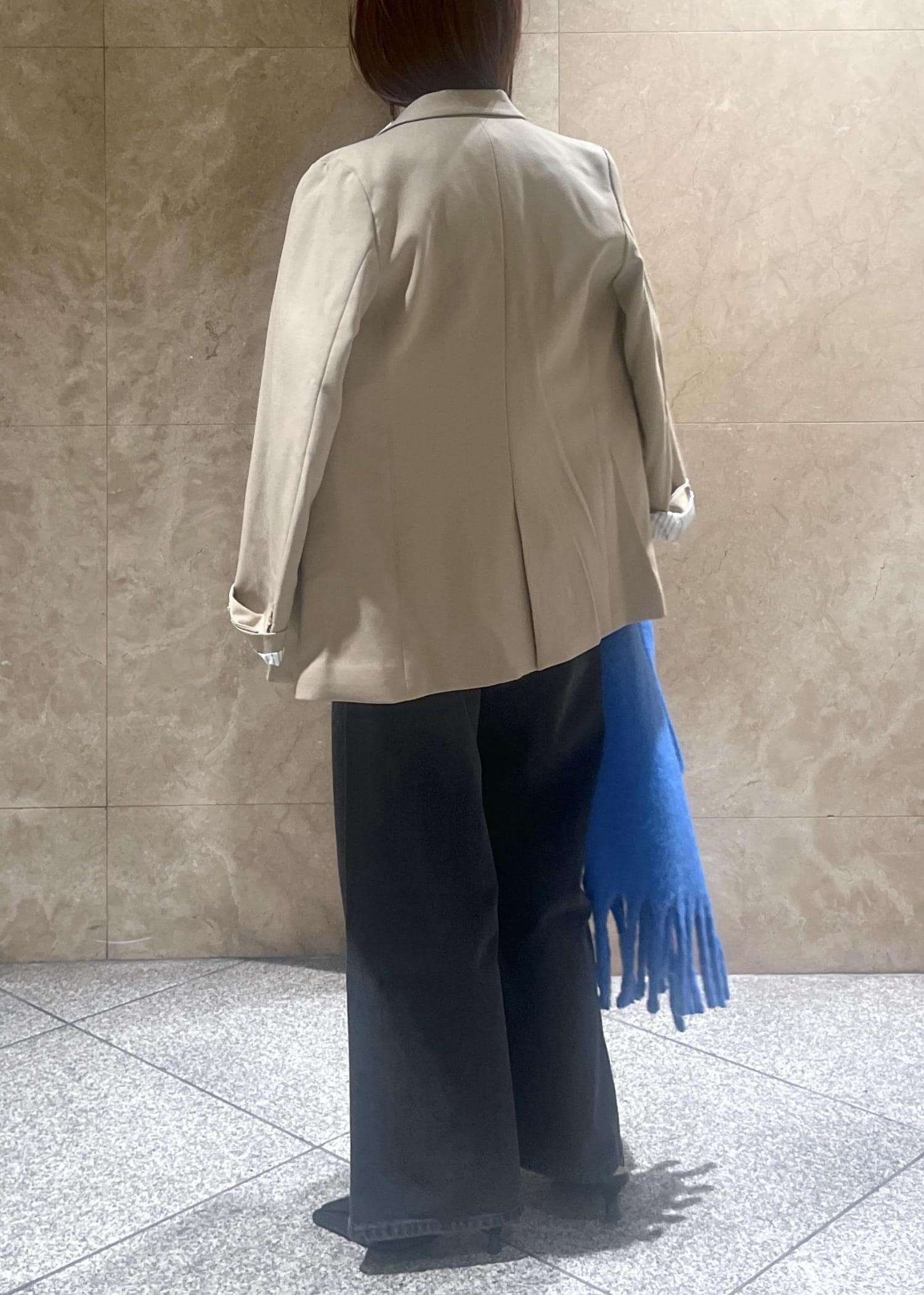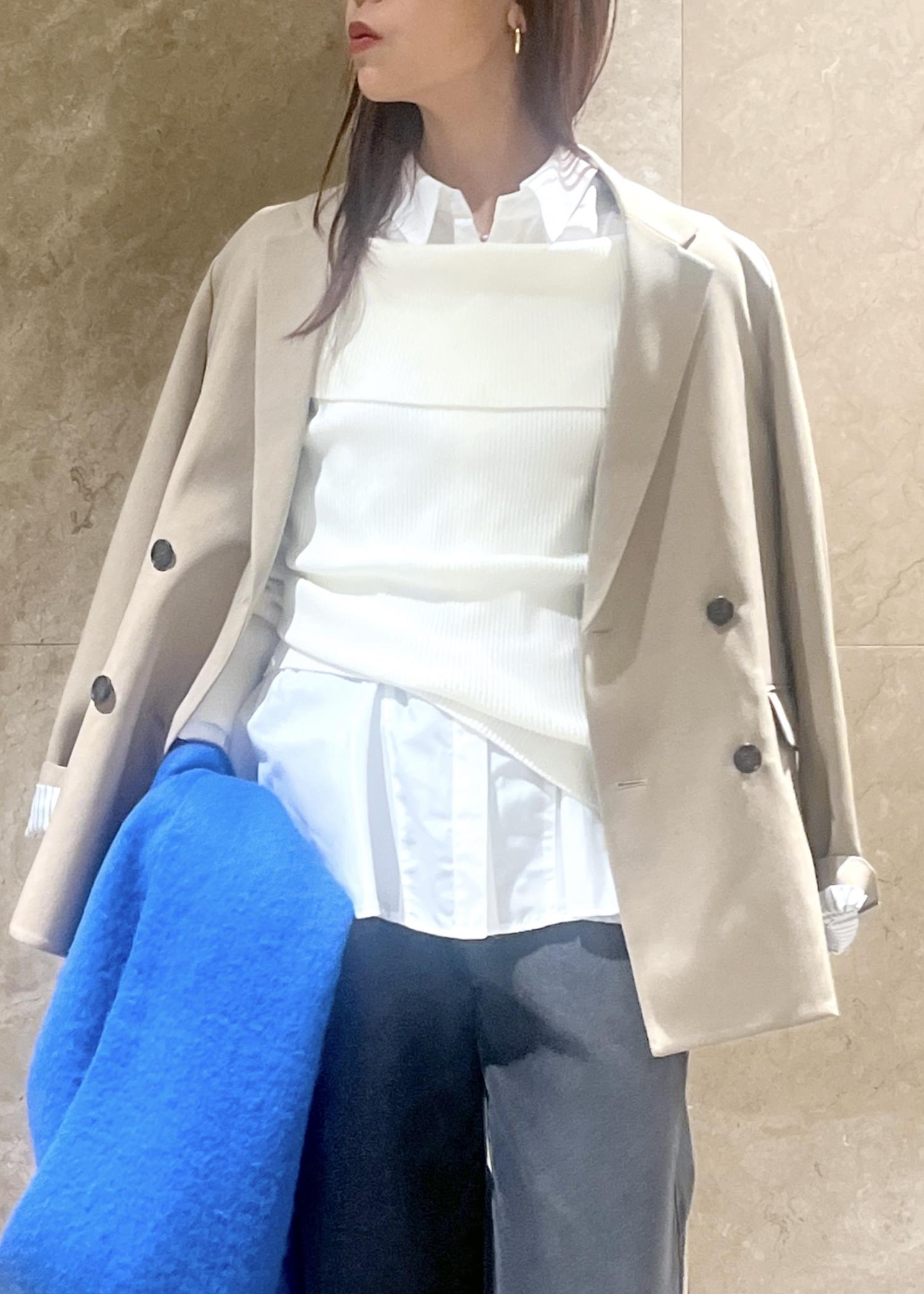 全体的にゆったりと余裕のあるサイズ感で、インナーは少し厚みのあるニットでも着られそう!
