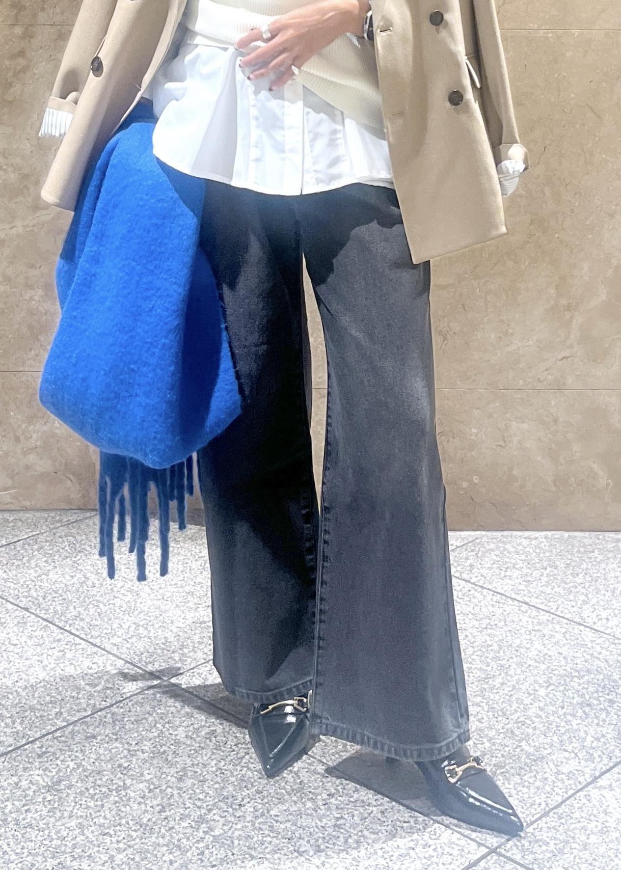 VIS【POLO BCS】VIS別注クロスベルトストレートワイドデニムチャコール / M¥9,900レビュー身長158cm、普段Mサイズを着用しており、こちらもMサイズで着丈は裸足で少し床に着くぐらい。
