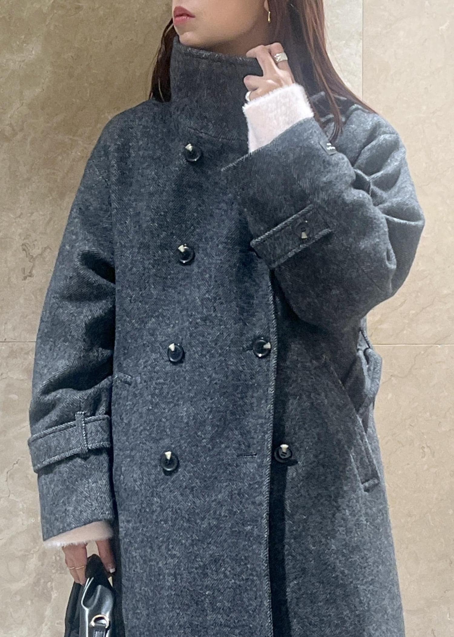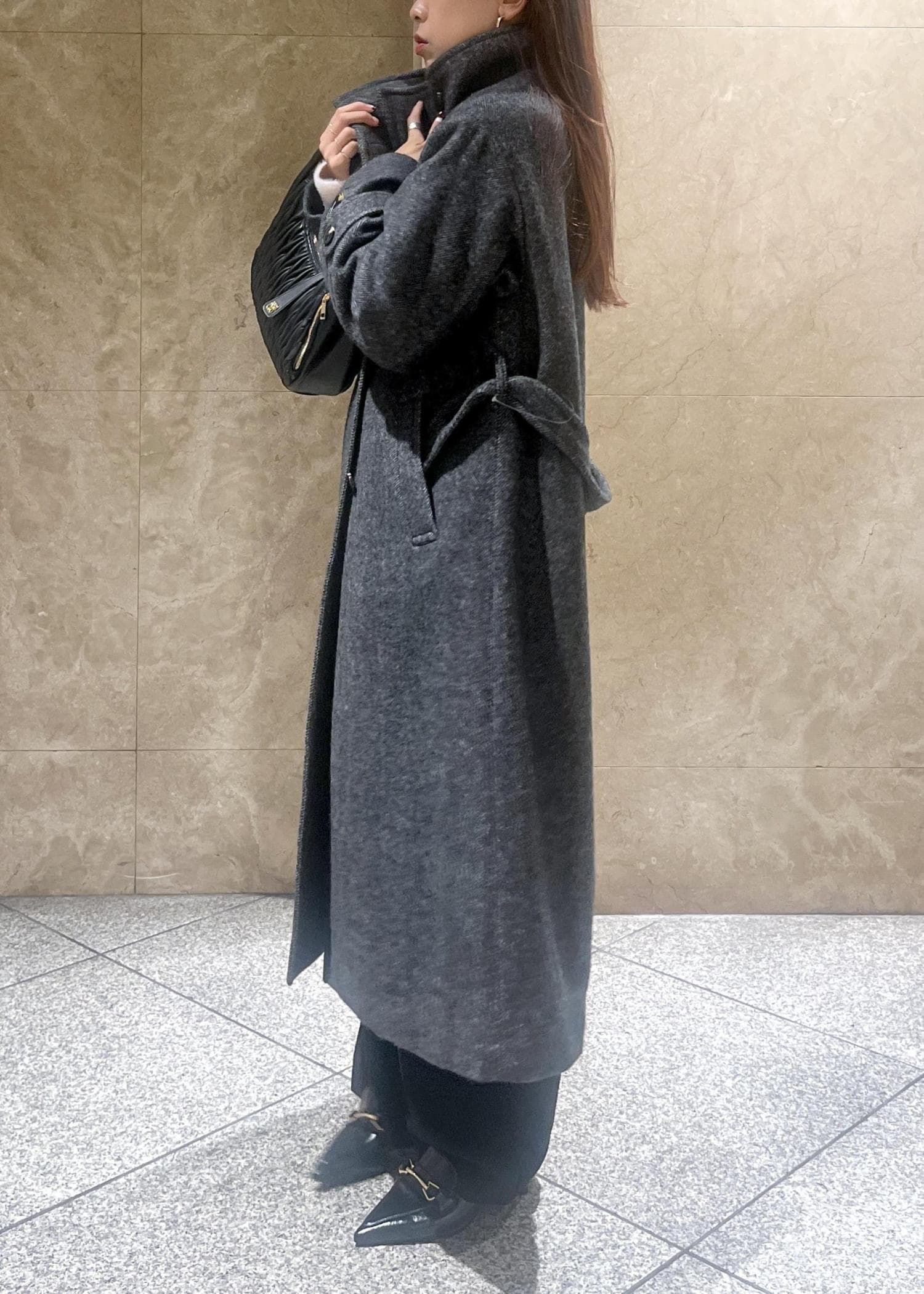 VIS尾州シャギースタンドカラーロングコート/静電気防止・WEB限定PS・TMサイズチャコール / M¥21,890レビュー身長158cm、普段Mサイズを着用しており、こちらもMサイズ。