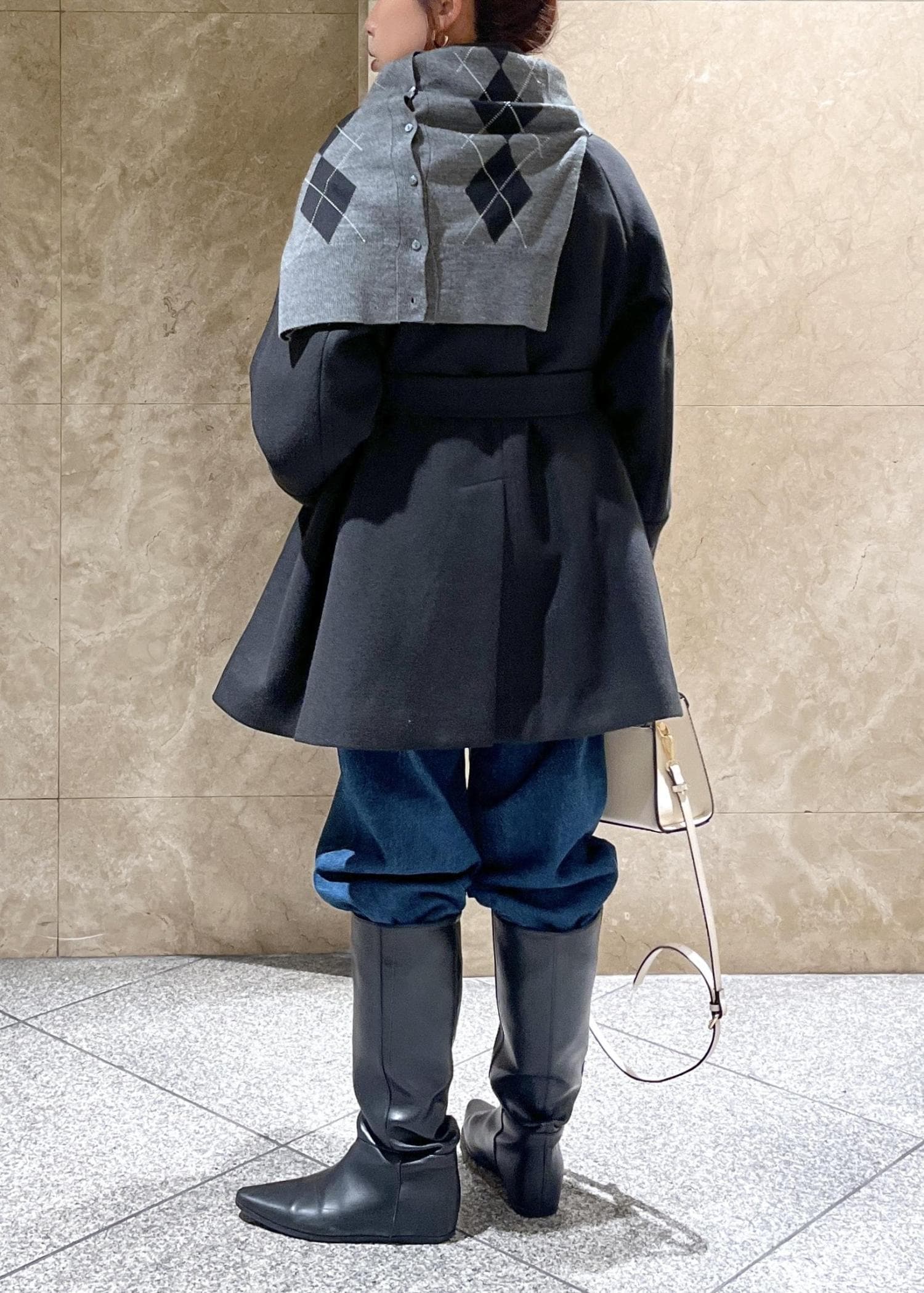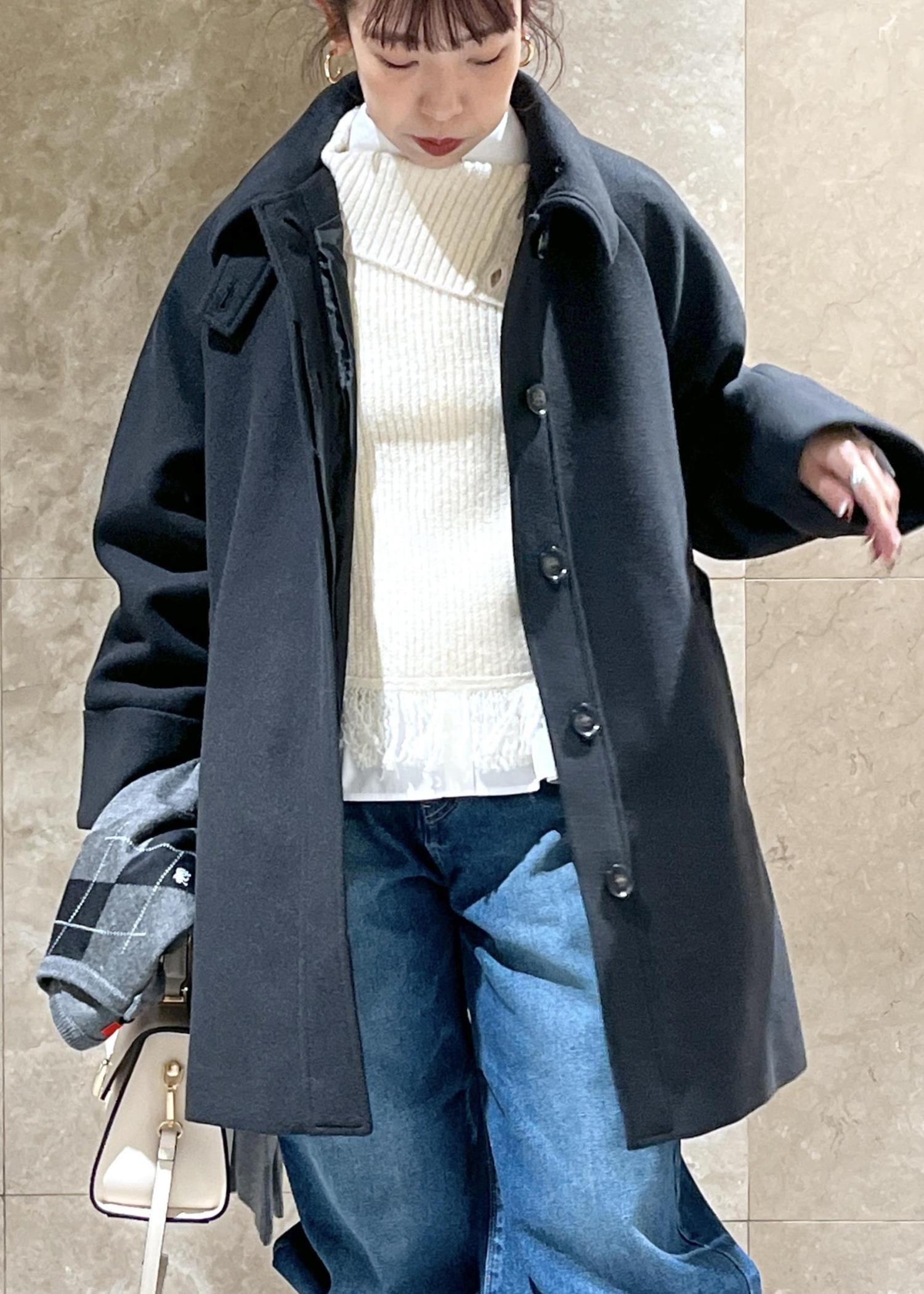 襟を立てたり、ウエストをキュッとベルトで締めたりなど一枚で着こなしのバリエーションも広く、ロングコートと違ってボトムスのシルエットが綺麗に見せられるのも嬉しいポイント、、!