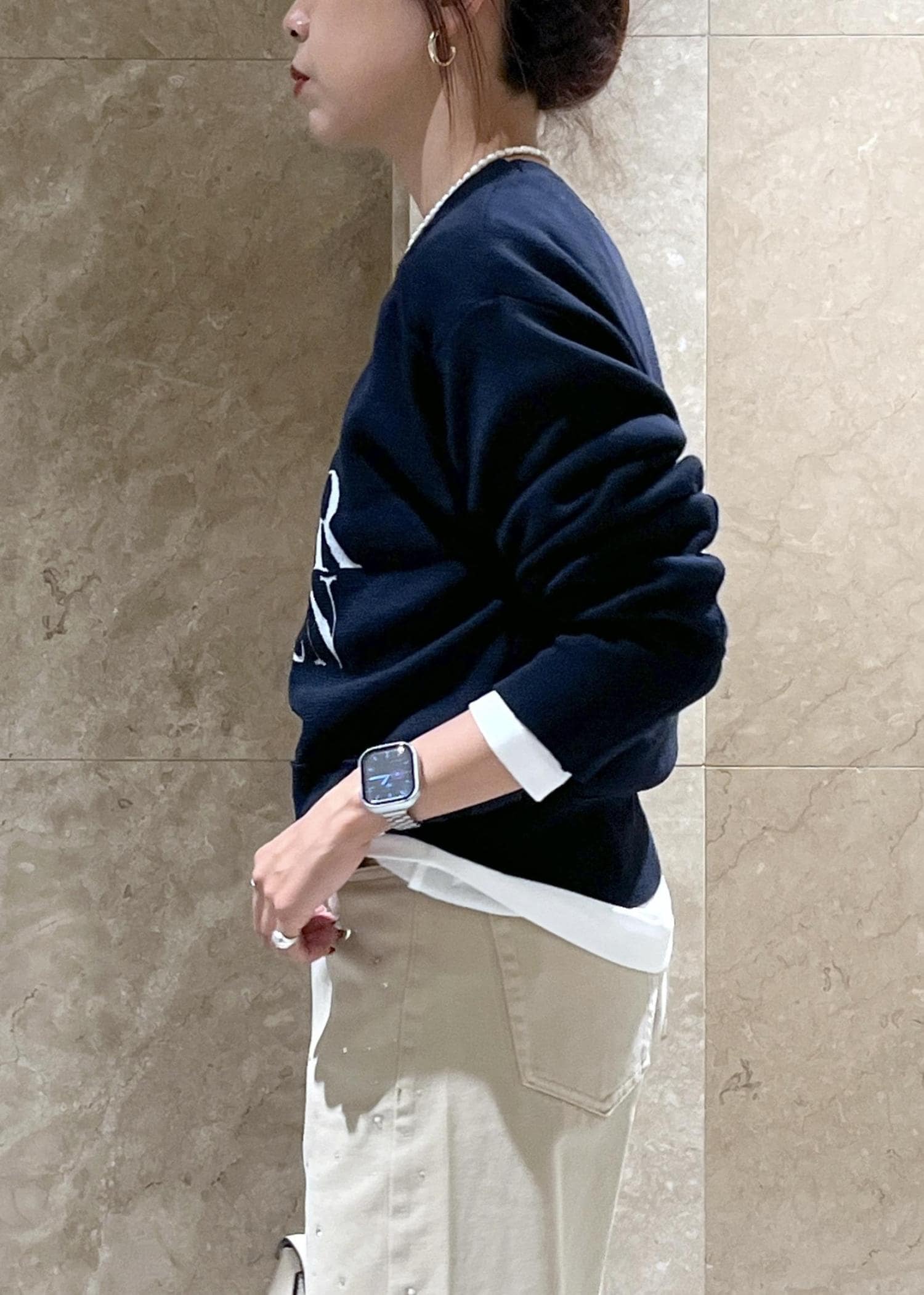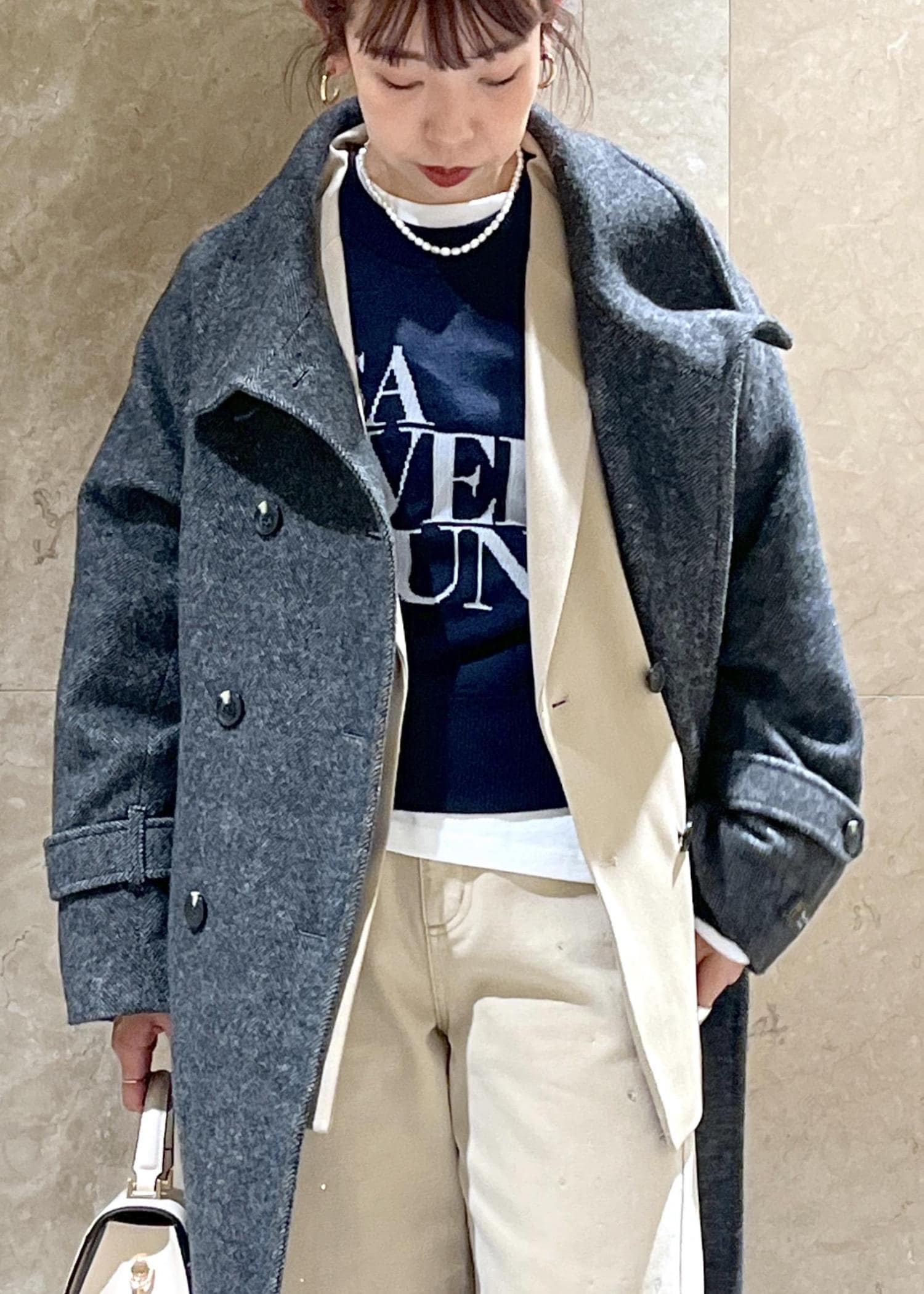 厚みもほどよく厚手すぎないため、今から長く着られそう。アウターを羽織る時期にもこのすっきりとしたサイズ感が重宝します◎