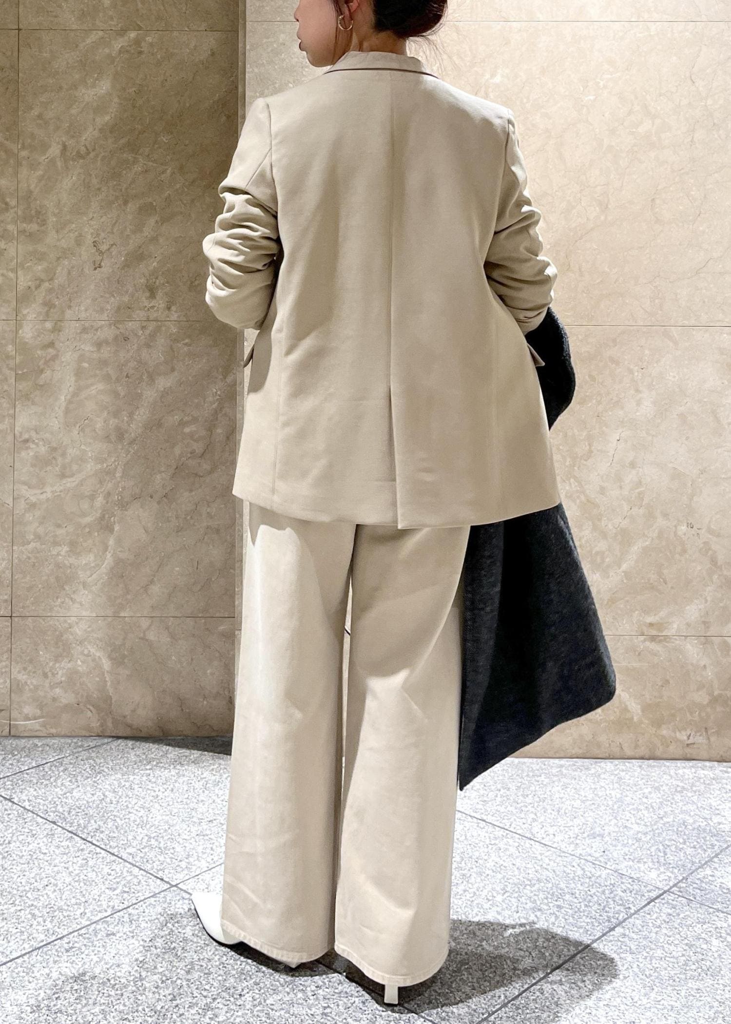 ベージュでセットアップ風。