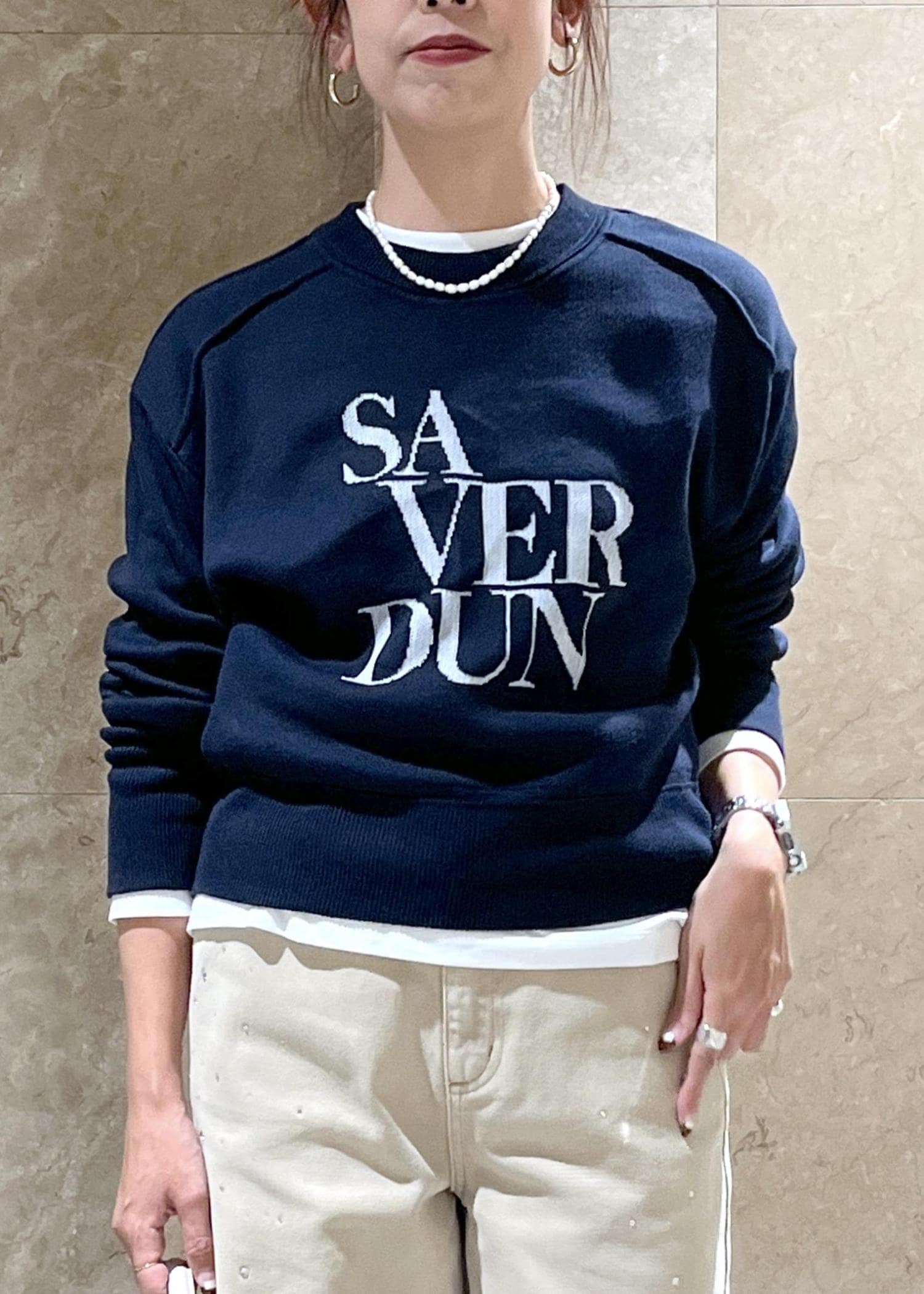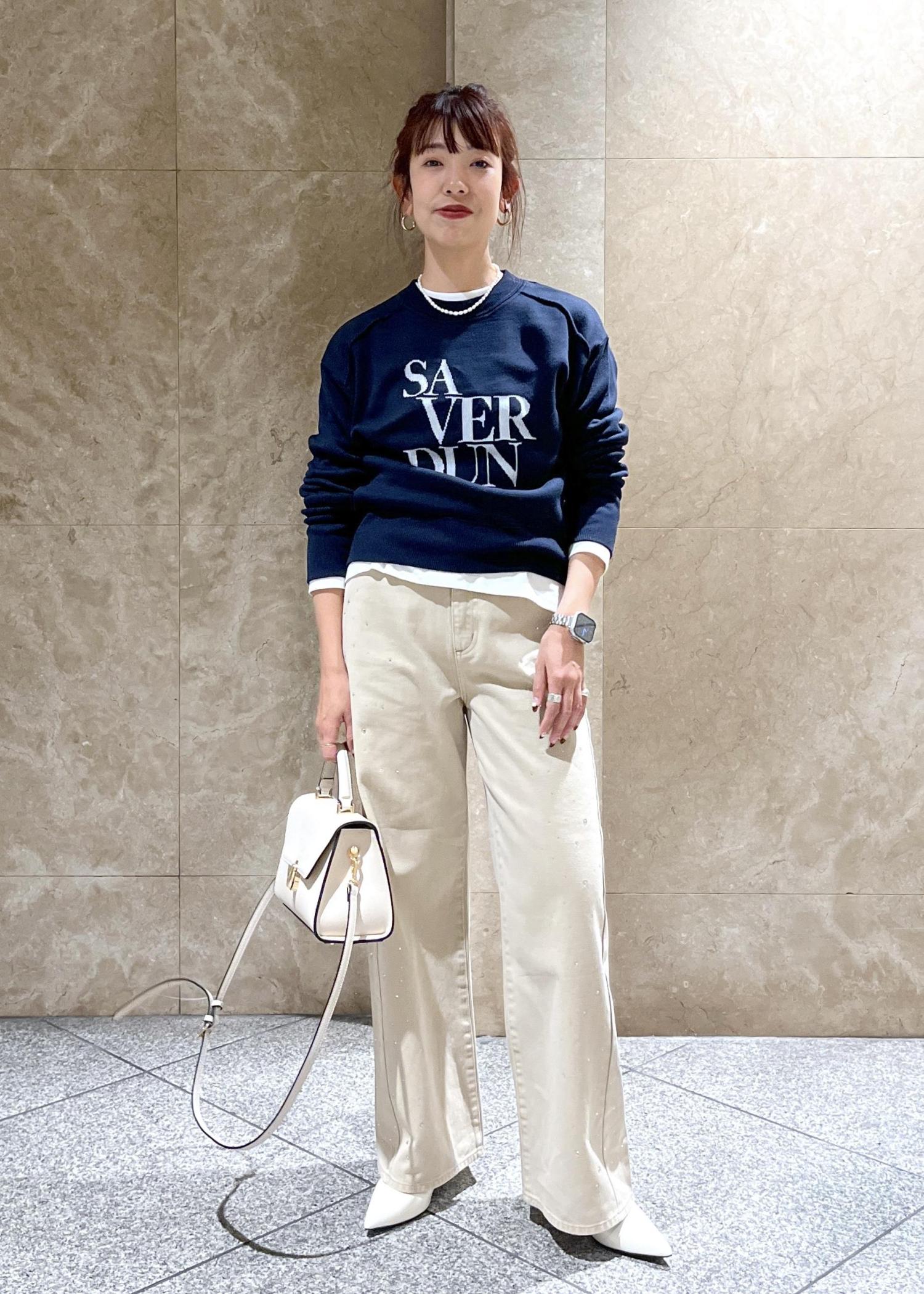 スウェットライクなデザインですが、ニット素材であるがゆえにカジュアルになりすぎず、またロゴもさりげないため着映えしながらも、コーディネートを邪魔しない脇役にも徹してくれる、、!