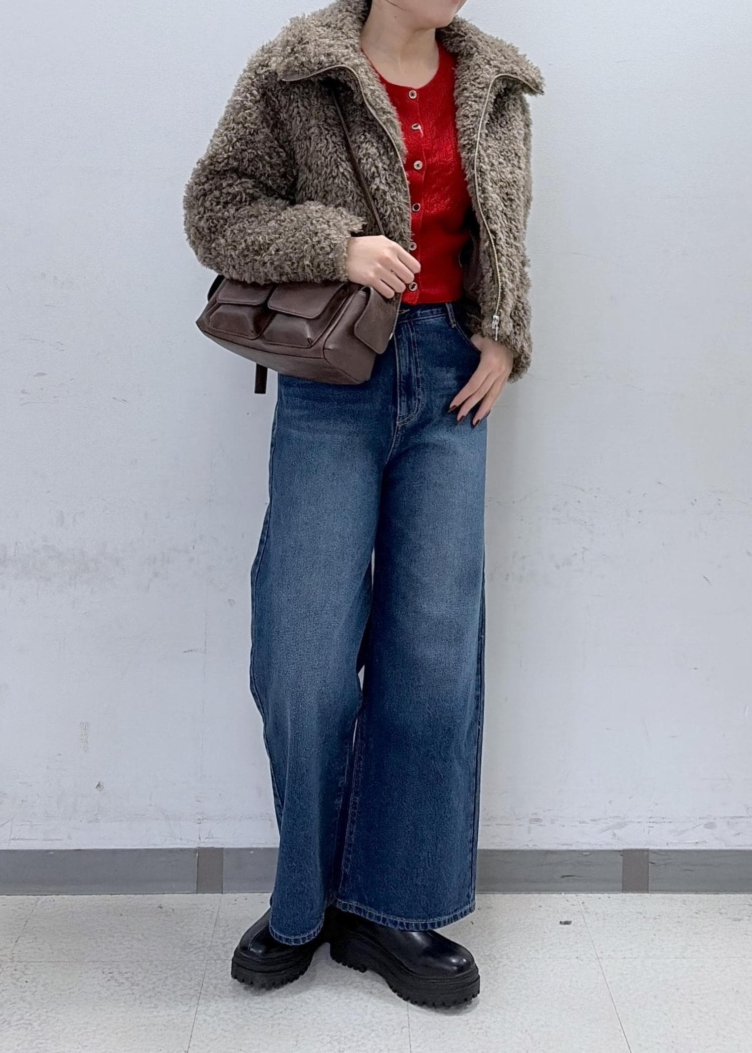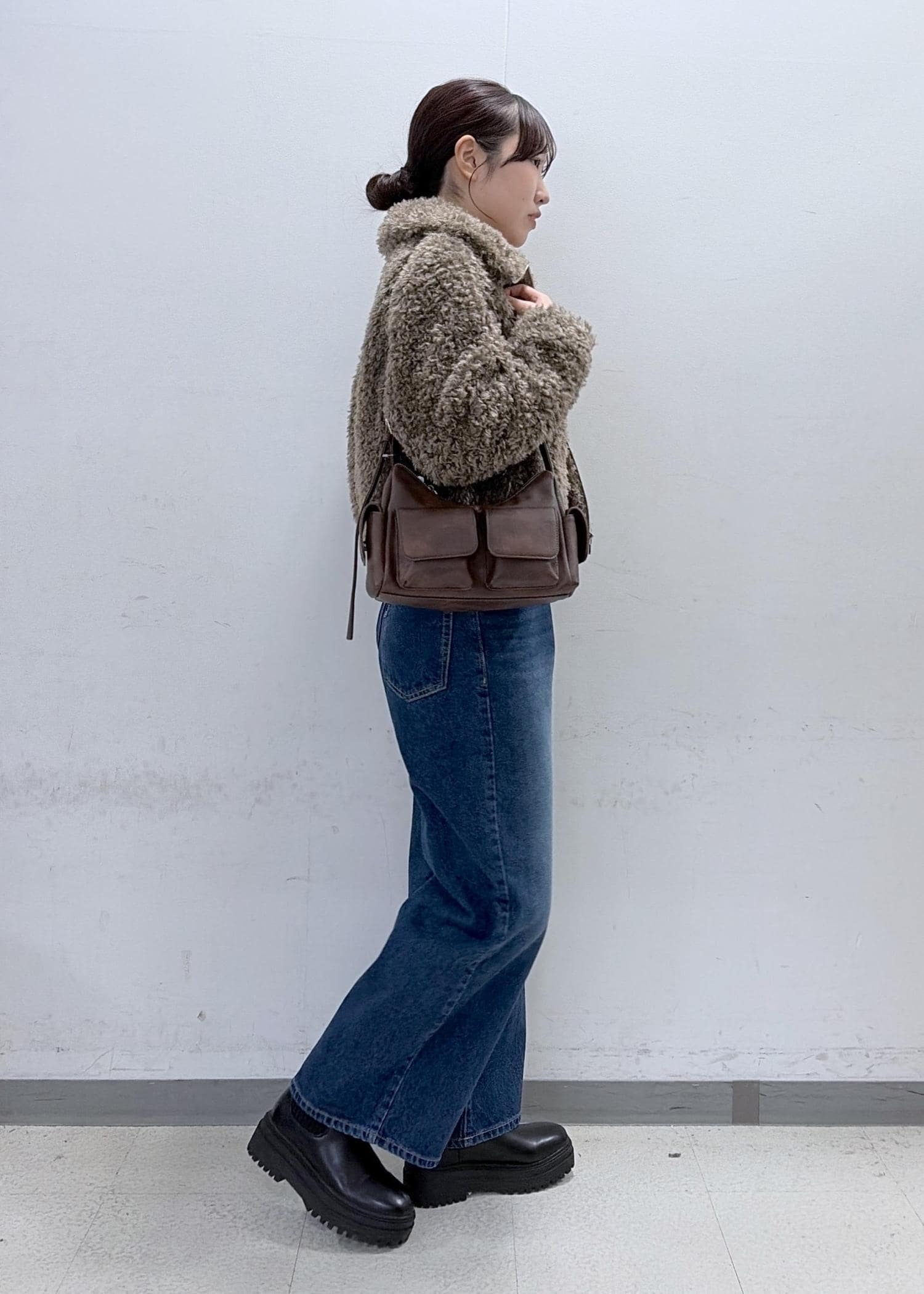 ショート丈ですが裾部分が丸く絞られたシルエットなのでパンツでもスカートでも合わせやすい丈感です!