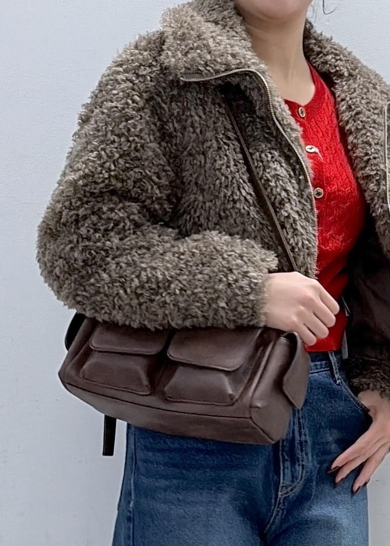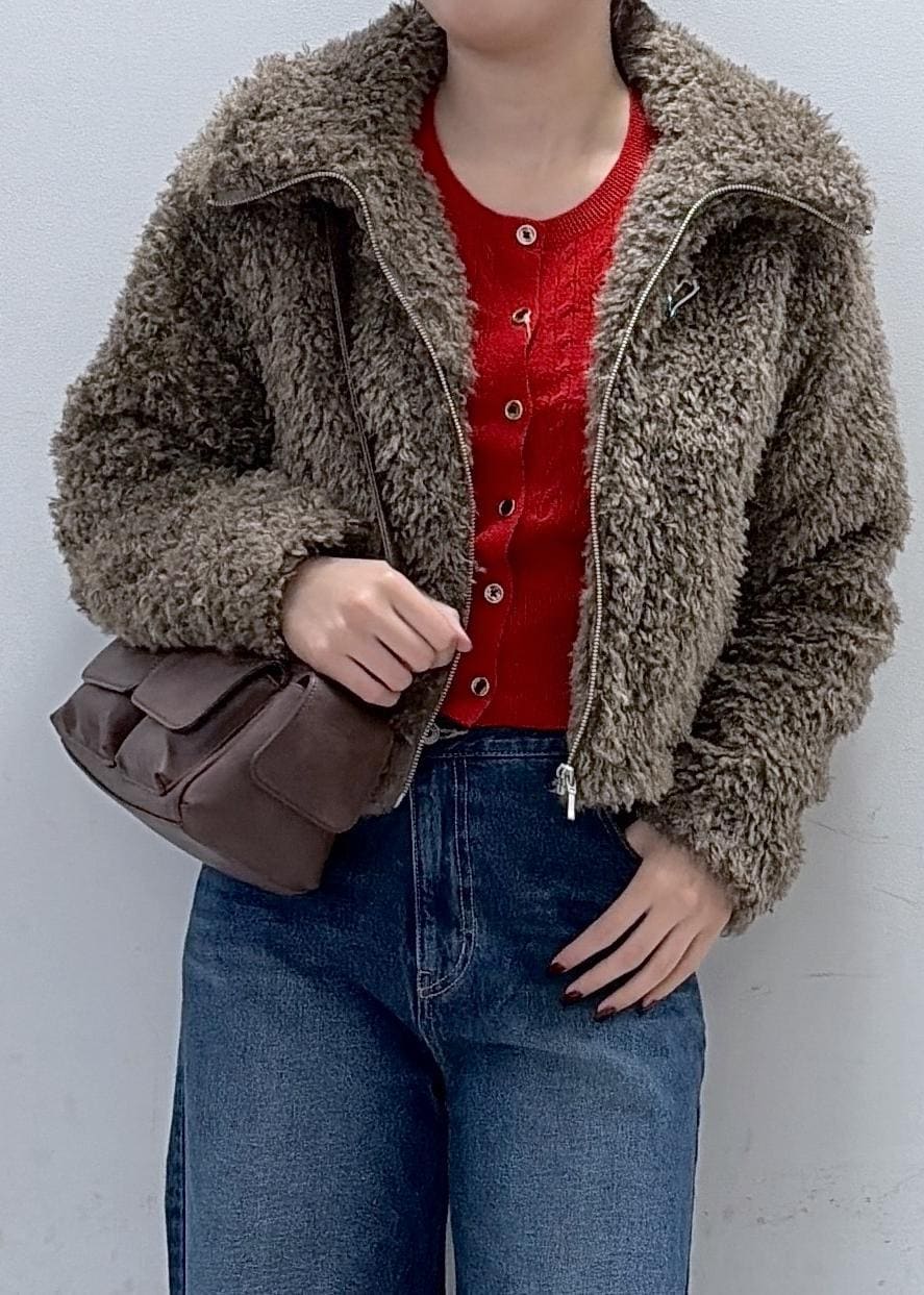 VISブローチ付きアソートファーブルゾンブラウン / F¥14,080レビューもこもこで軽くて暖かいショート丈アウターです(*´︶`)