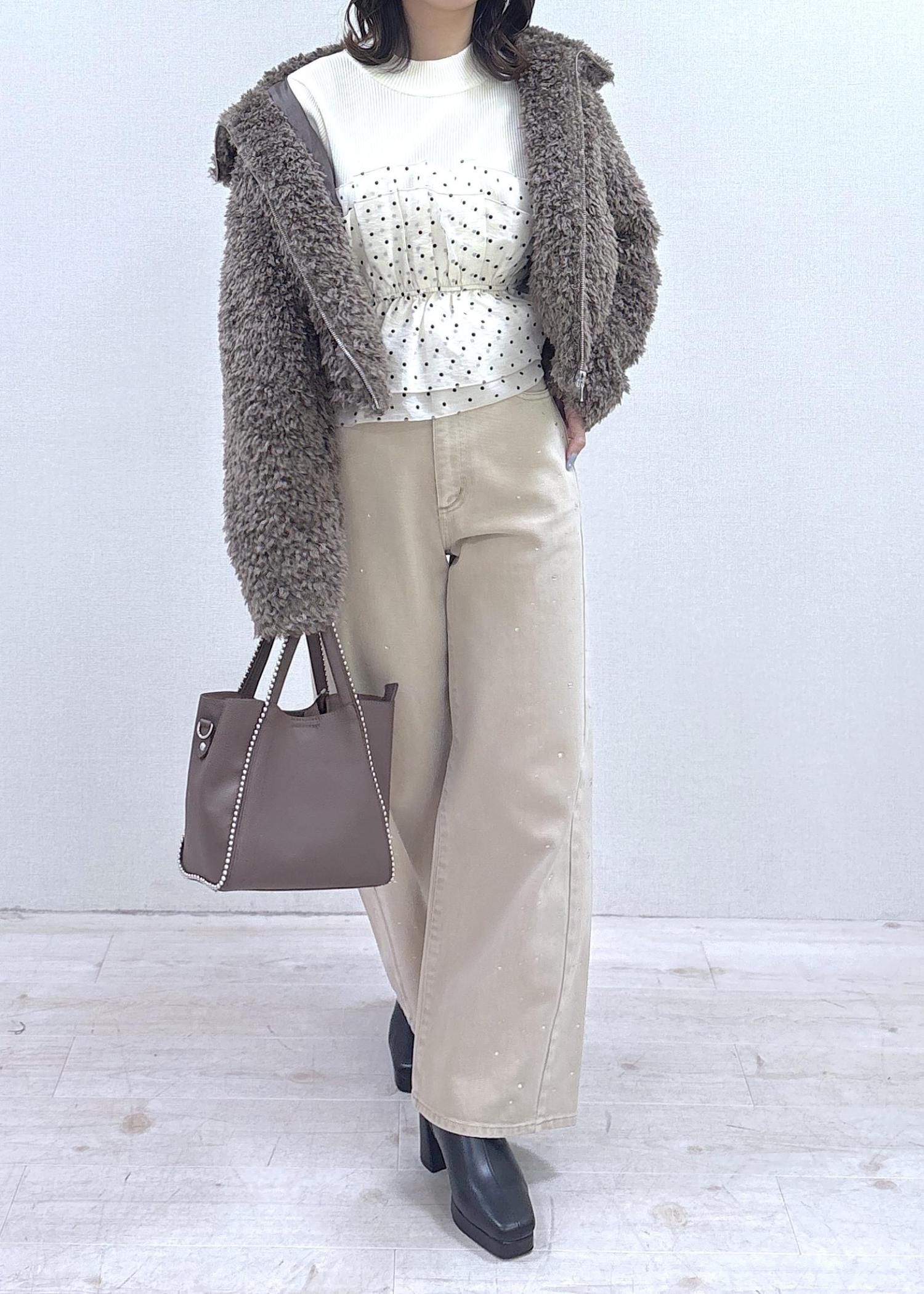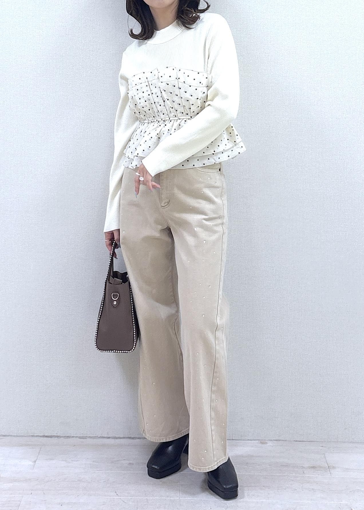 VISビジューデニムパンツベージュ / S¥7,909レビュー綺麗め、可愛らしい甘めなコーデに合わせやすい柔らかい色味のデニムで、歩くたびにビジューが光って存在感があります!写真より実物の方がビジューがよく見えるはず!