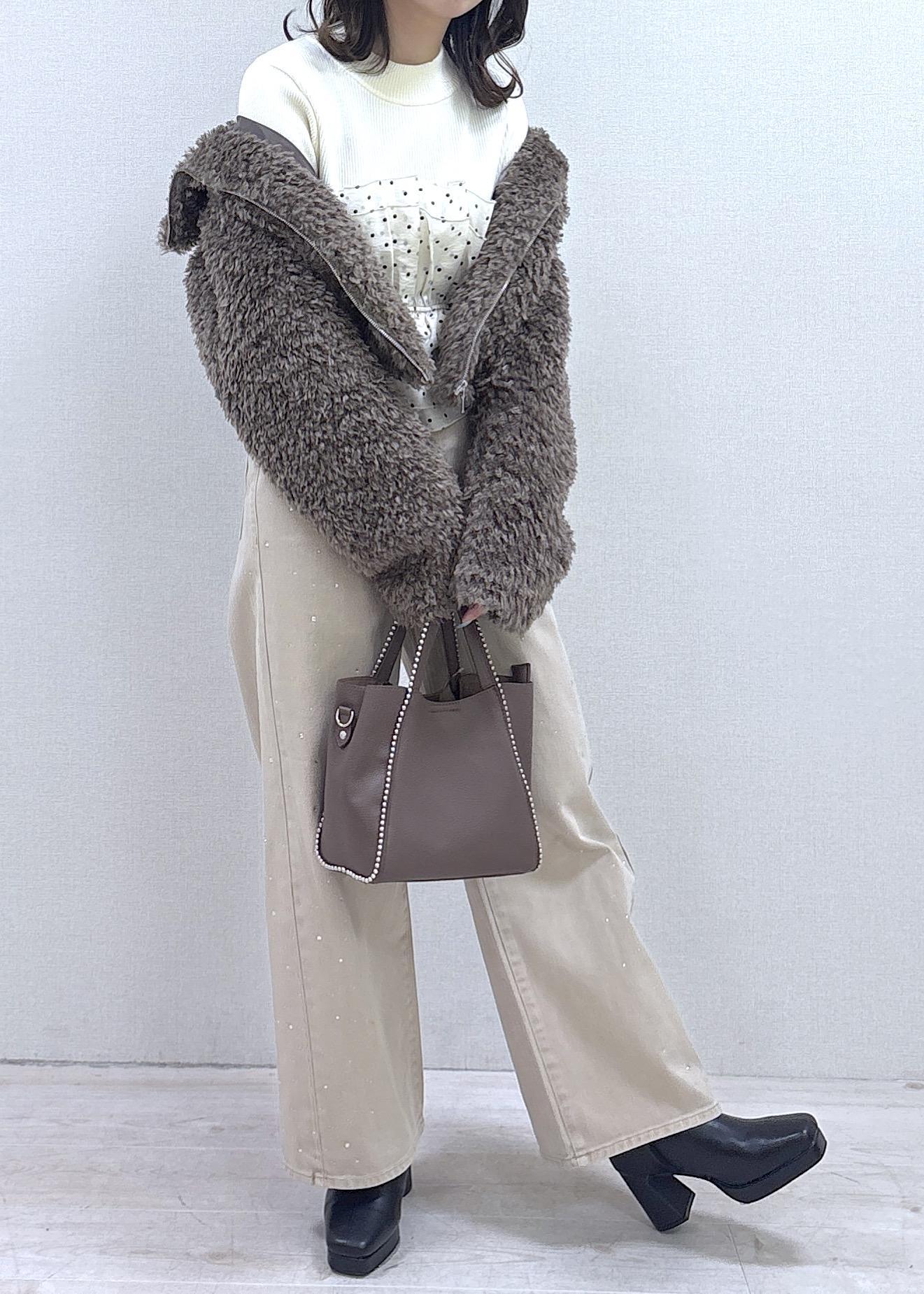 VISブローチ付きアソートファーブルゾンブラウン / F¥14,080レビュー可愛らしい印象はありつつかっこいいメンズライクのファッションにも相性のいいプードルコートデザインで、丈が短めなのでボトムスの丈感やボリュームを選ばずなんでも合わせやすいです!
