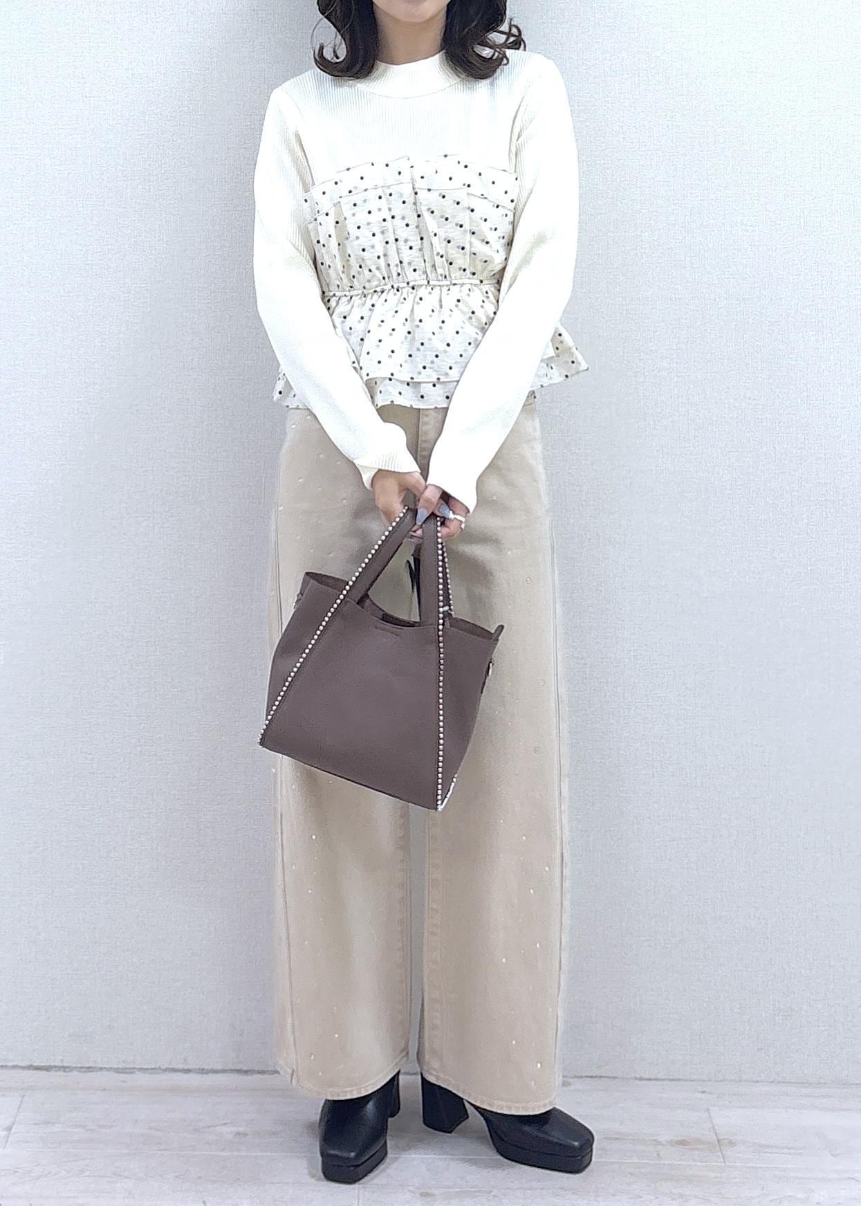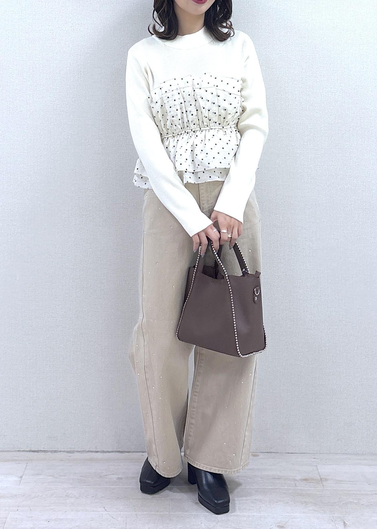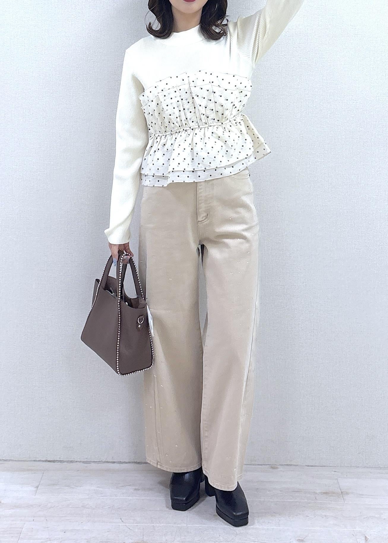 キナリは白ニットに白のビスチェなので膨張してみえるかなと思いましたが着てみたらリブニット特有のすっきりとしたコンパクトなシルエットが際立ち着膨れは気になりませんでした! -