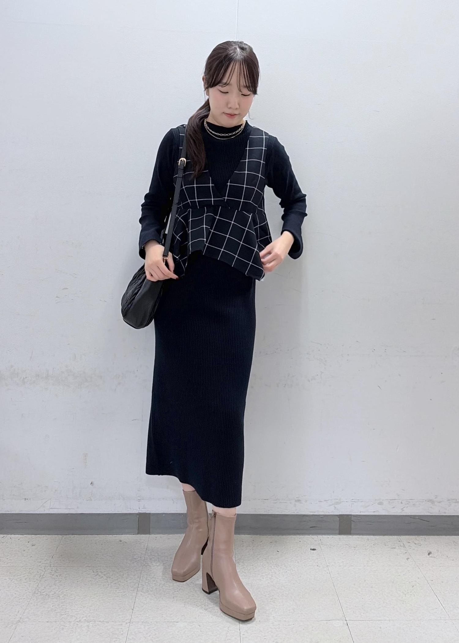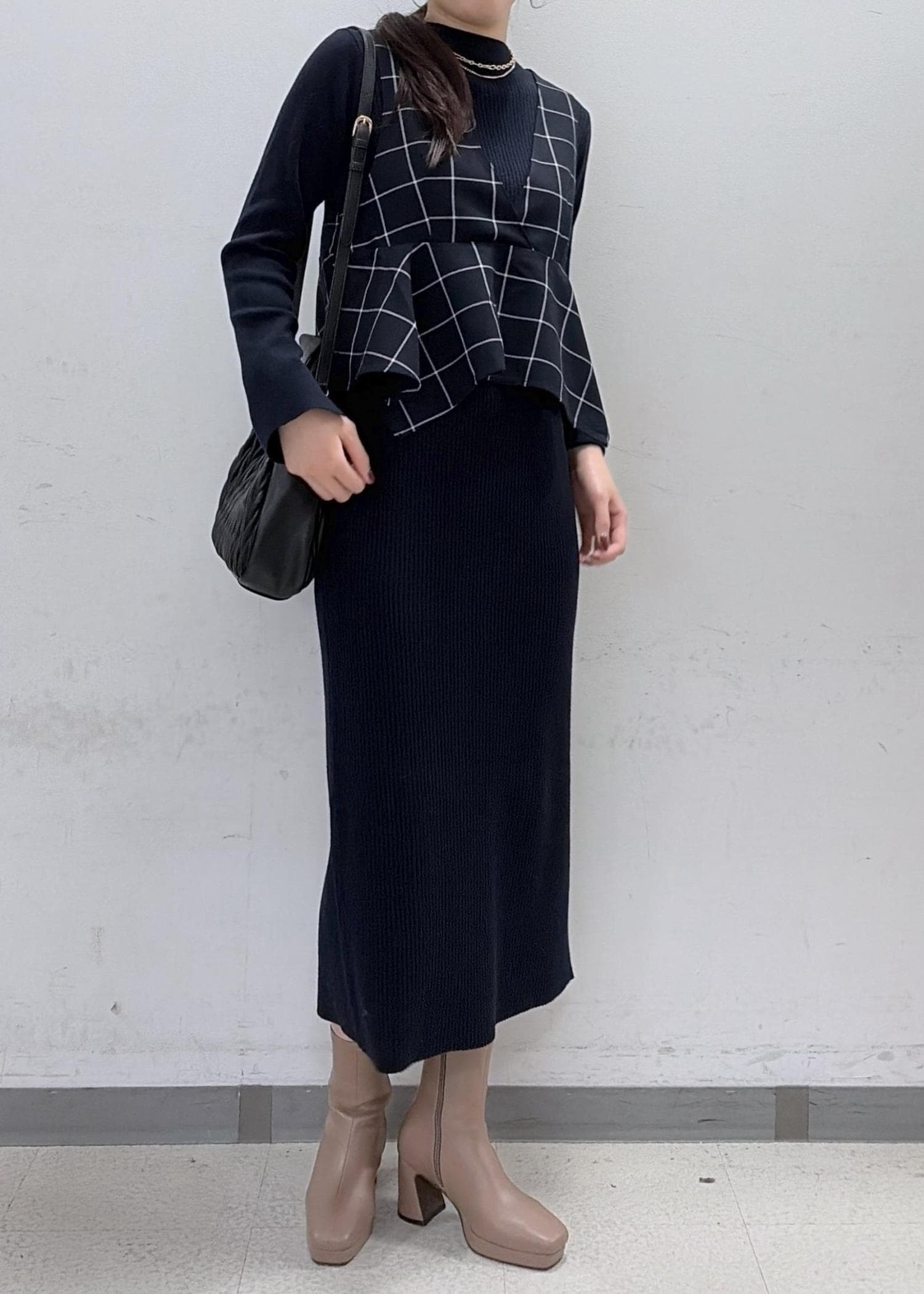 予約VISビスチェセットニットワンピースネイビー系 / M¥9,999レビュー167cmでもしっかり長さのあるワンピースです!