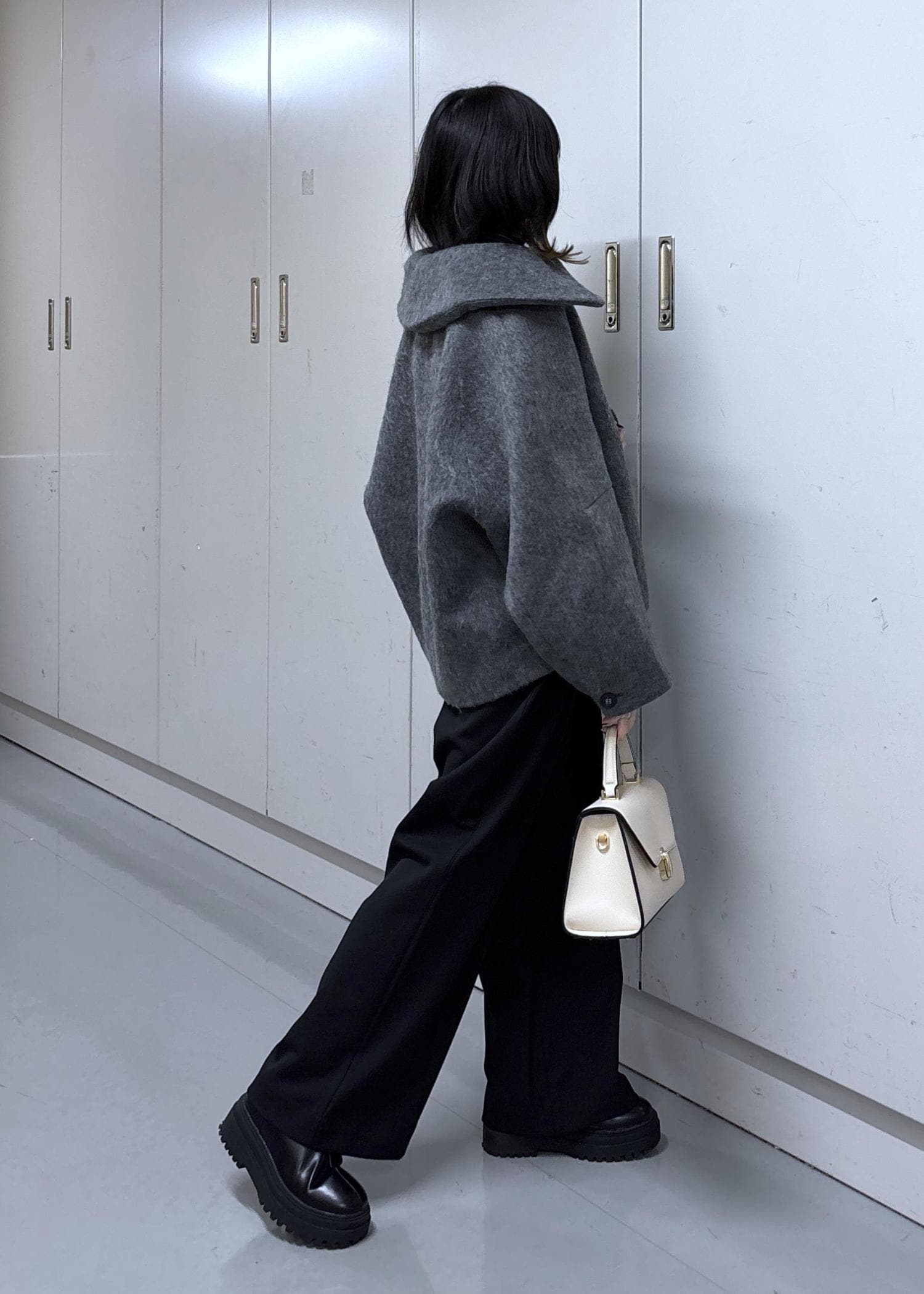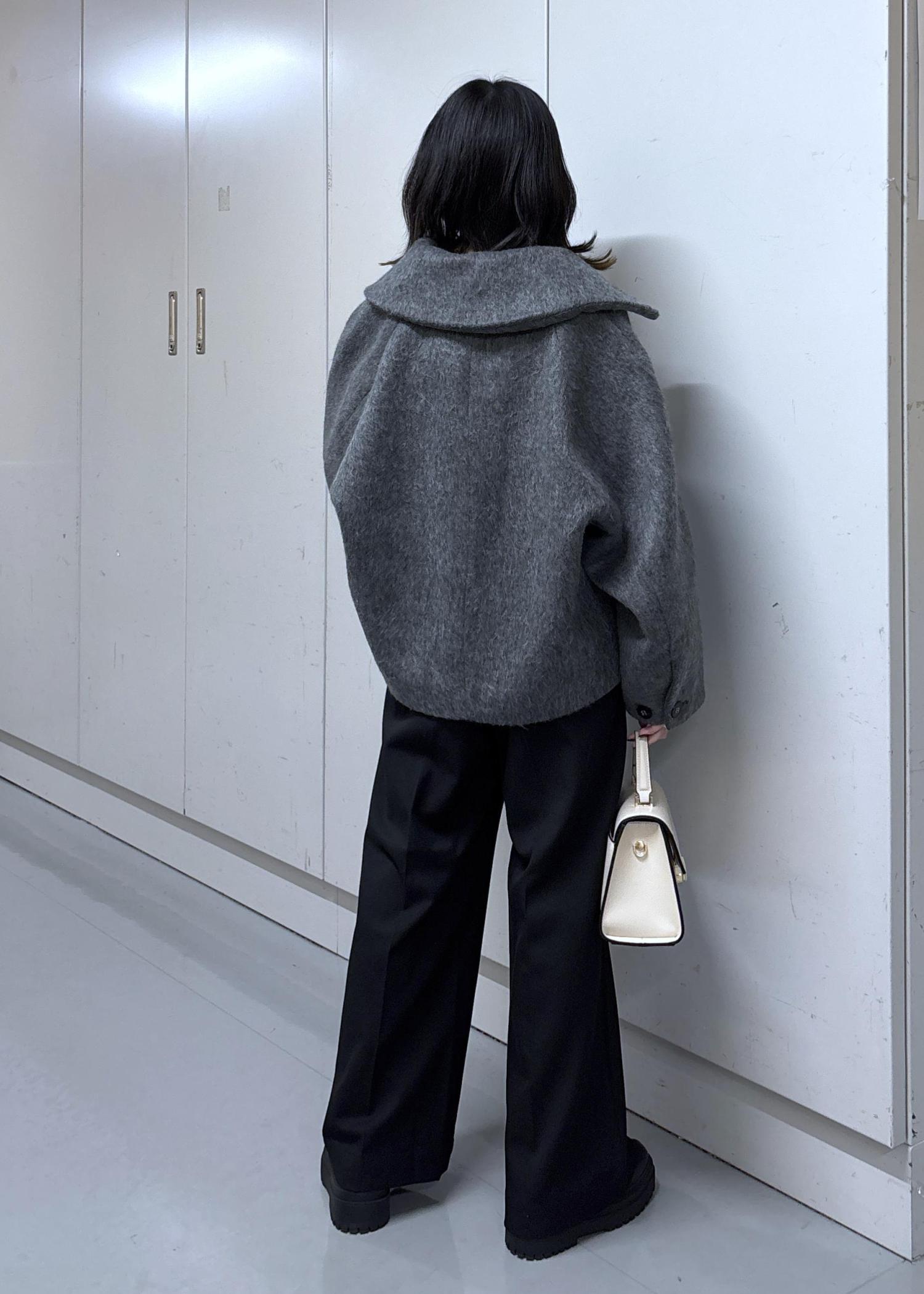 予約VIS【アウター総選挙1位】ビッグカラーモモンガシャギーショートコートグレー / S¥10,989レビュー155cm、Sサイズ着用。おしりは隠れている気がします。