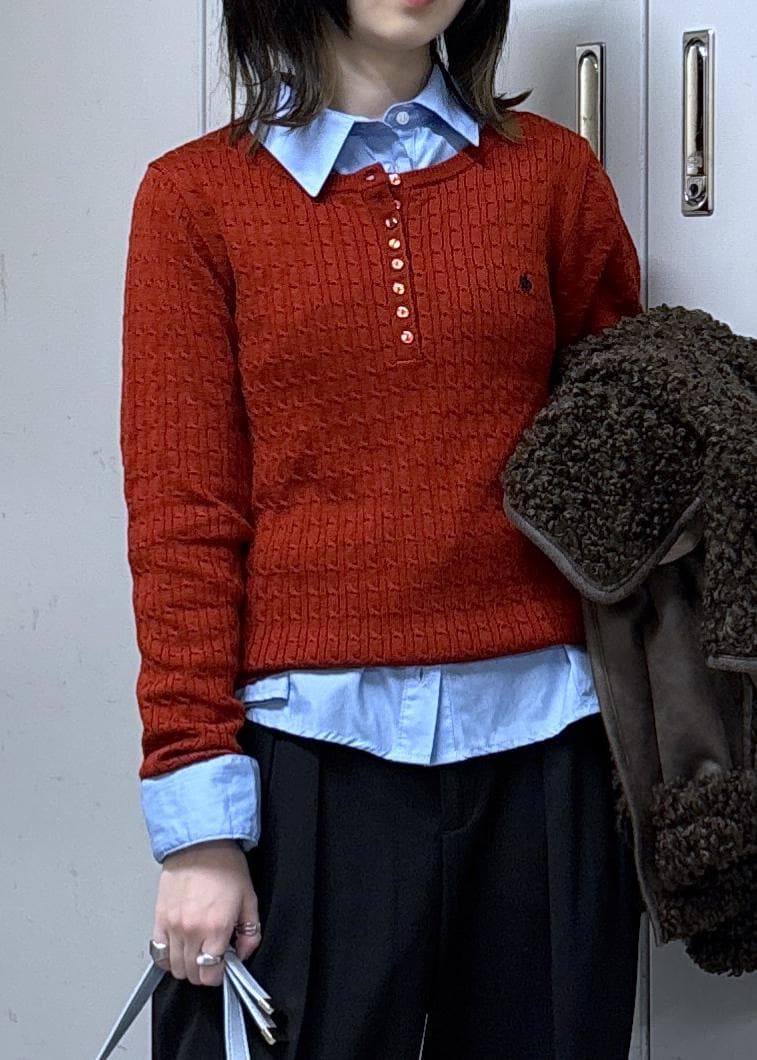 VIS【POLO BCS】VIS別注ヘンリーネックミニケーブルニットトップスレッド系 / F¥6,600レビューピタッとしすぎず、丈も短すぎないです。
