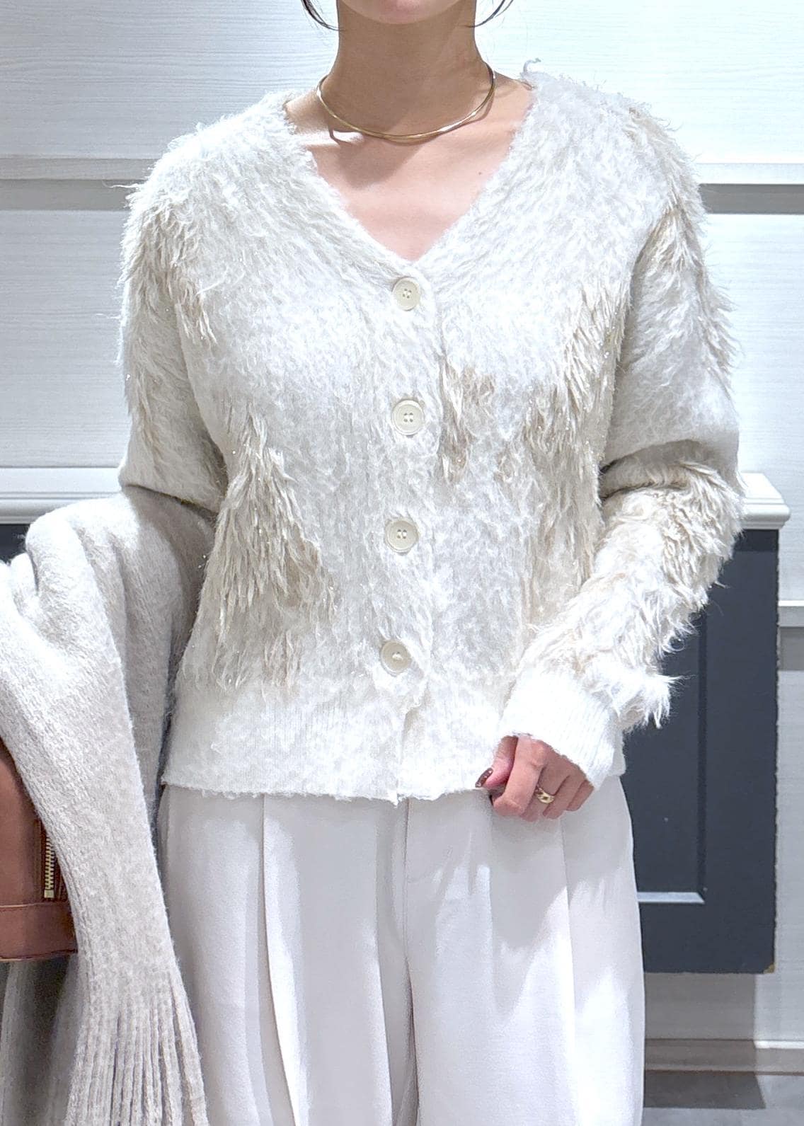 VISアート柄ジャガード起毛ニットカーディガン/イージーケアオフホワイト / F¥7,689レビュー156cmで腰がしっかり隠れる丈感でした!