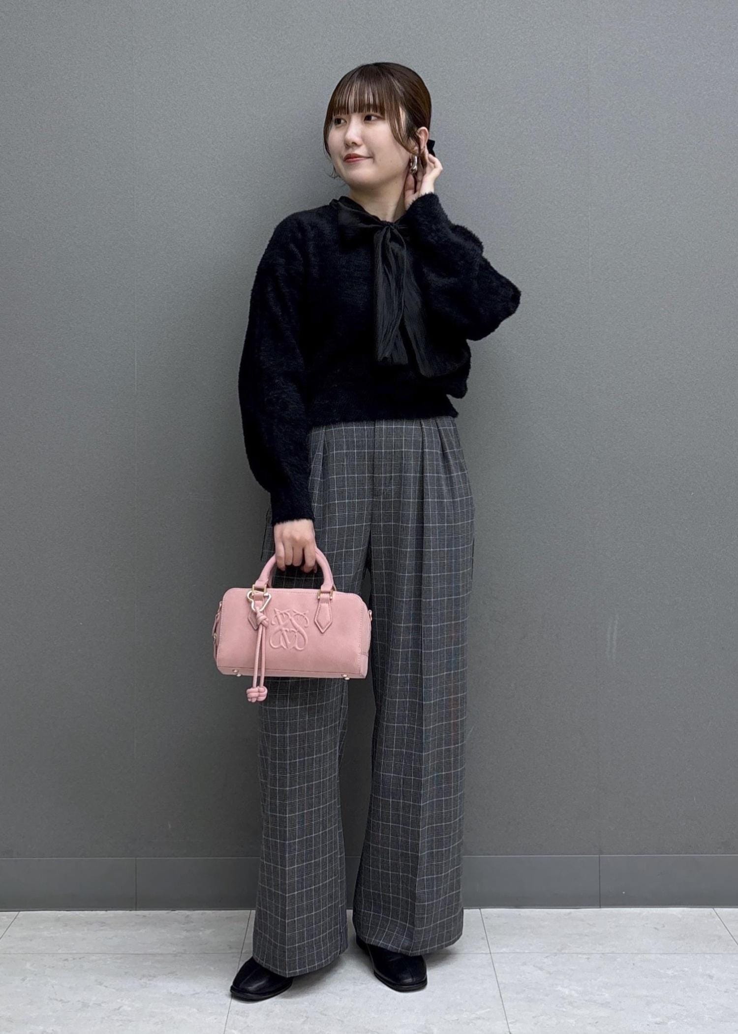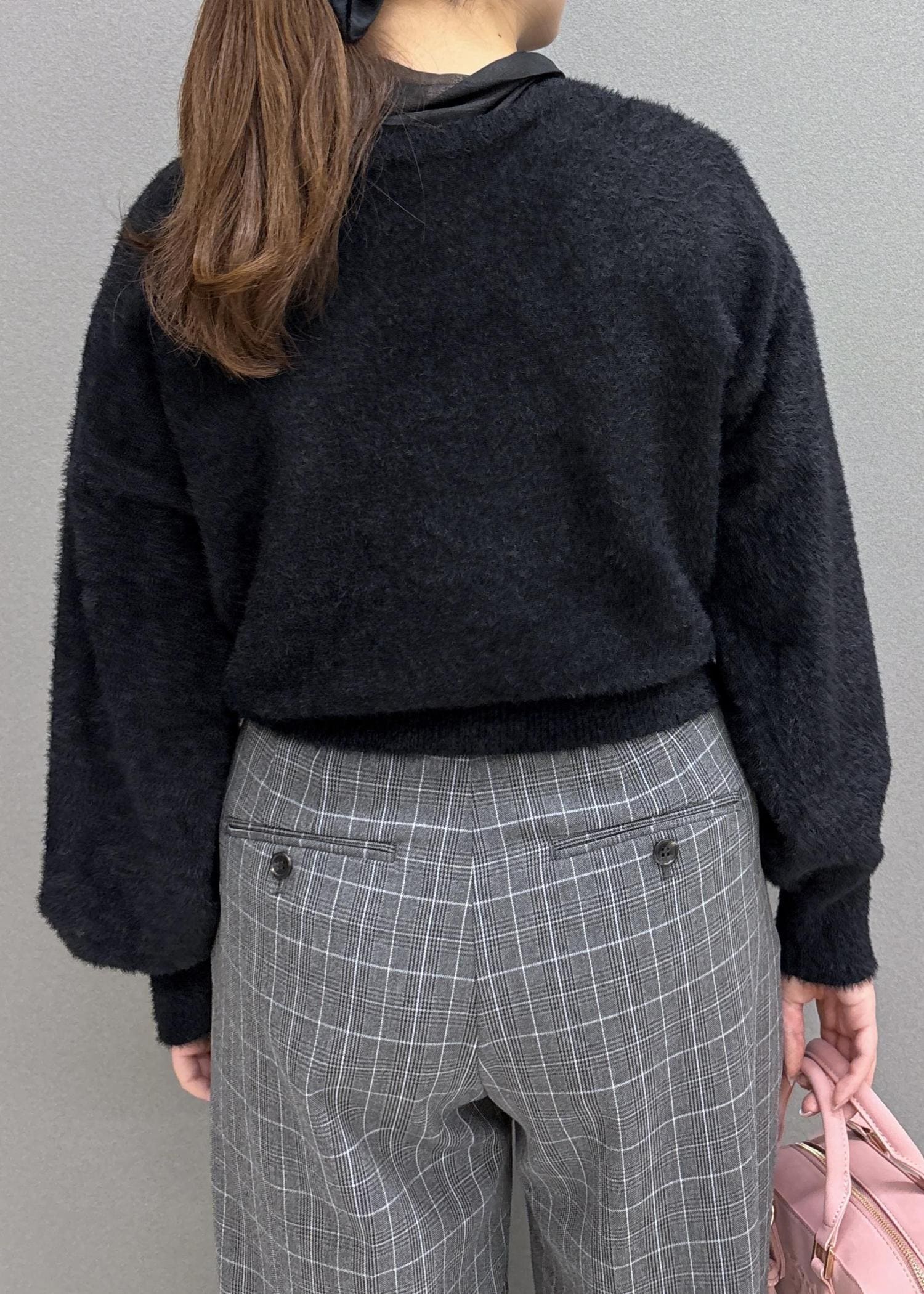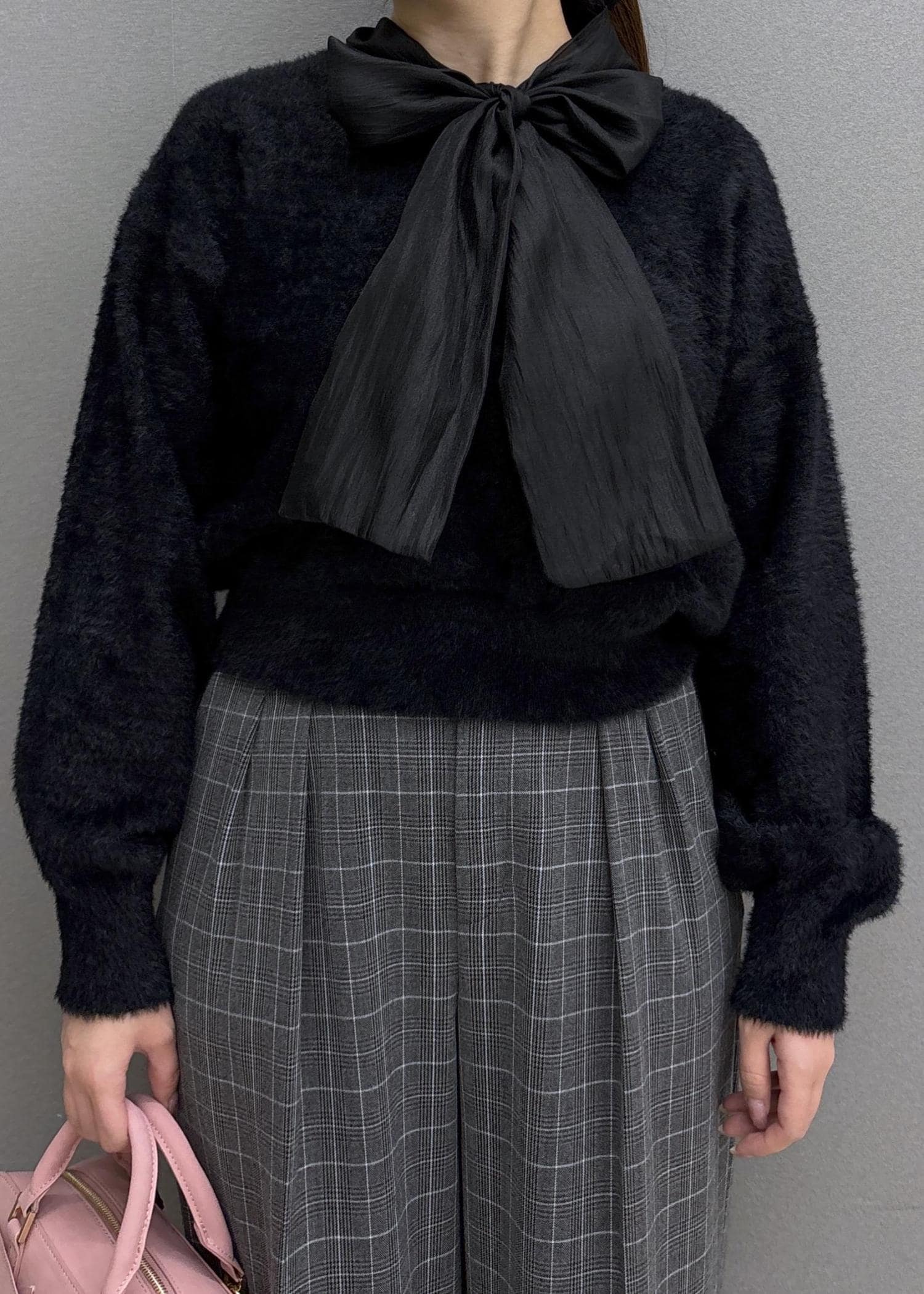 VISシアーボウタイリボン付きフェザーニットプルオーバー/2WAY・イージーケアブラック / F¥6,589レビューボウタイが取り外しできる2WAY仕様◎身幅は程よくゆとりがあり、身体のラインを拾いにくいサイズ感です!ふわふわ素材で肌触りもよく、ノンストレスで着用できます!コンパクトな丈感なのでインしなくてもバランスよく着用できました!