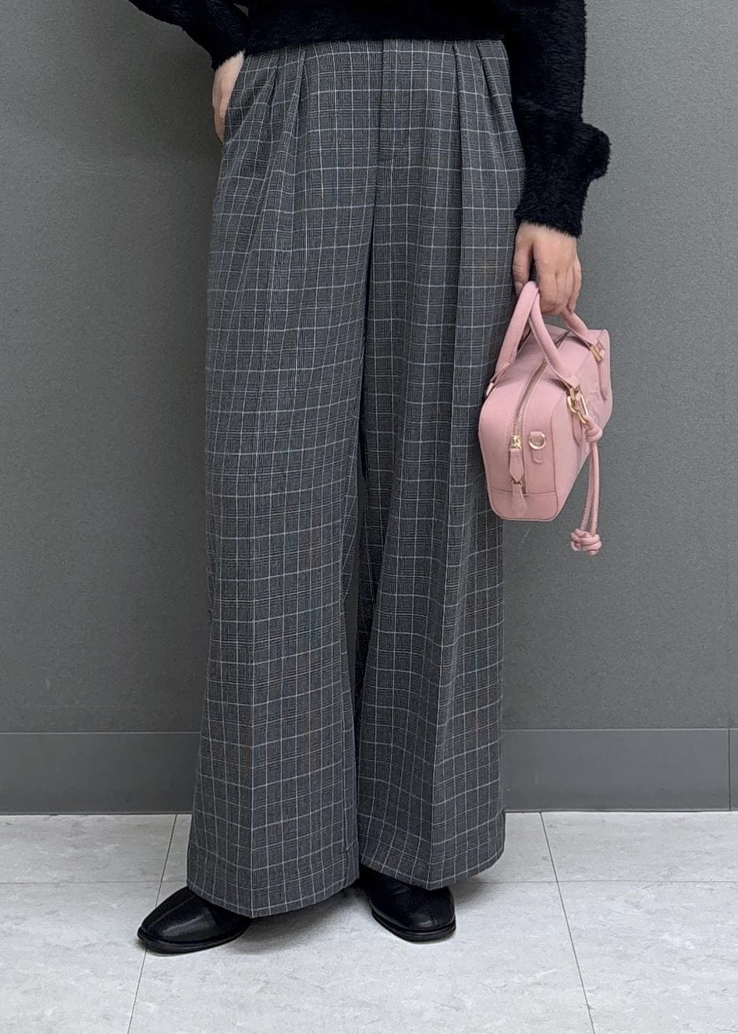 VISHot Beautyツータックワイドパンツ/イージーケアグレー系 / M¥6,589レビュー160㎝ / Mサイズ着用だと足首まで隠れる長さです。ワイドパンツですが、タックも入っているのでスッキリ着られます!気になるヒップ周りもピタッとしすぎず、身体のラインを拾いにくいのも嬉しいポイント◎