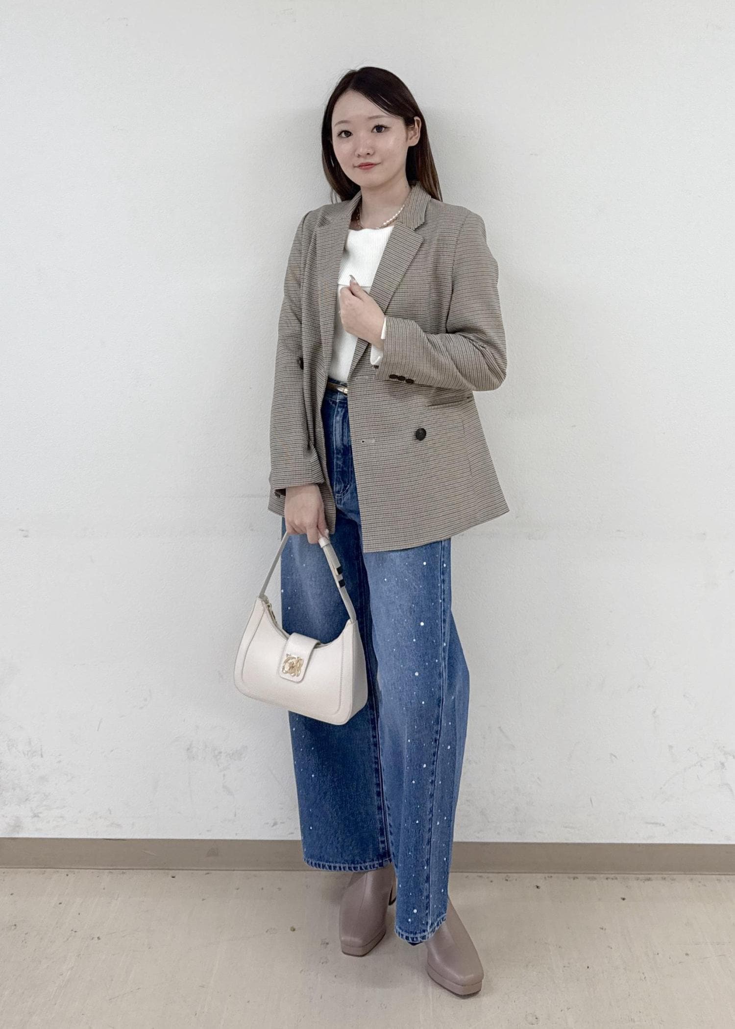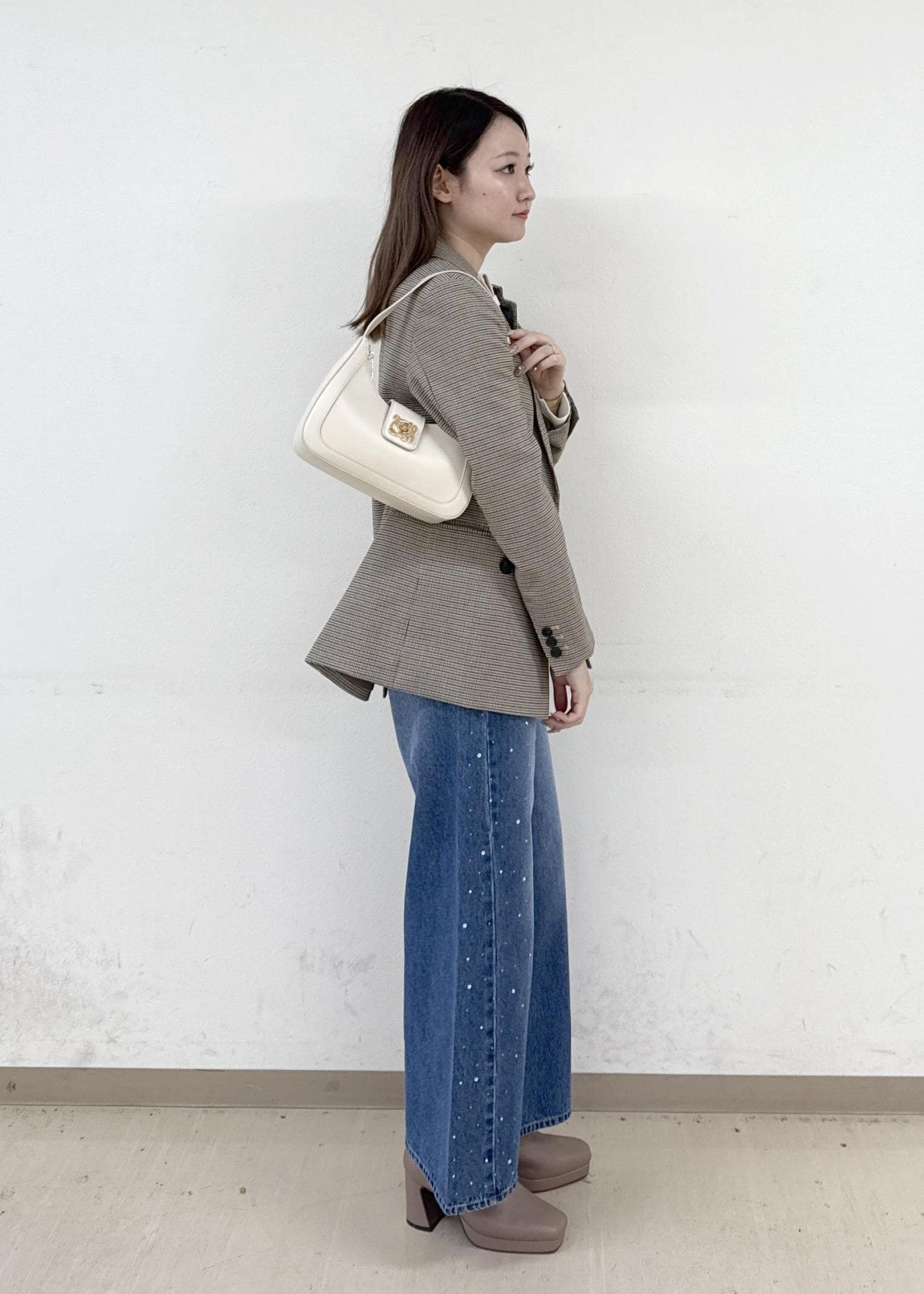 肩掛けができるくらいの長さなので、コーディネートの幅も広がります! -
