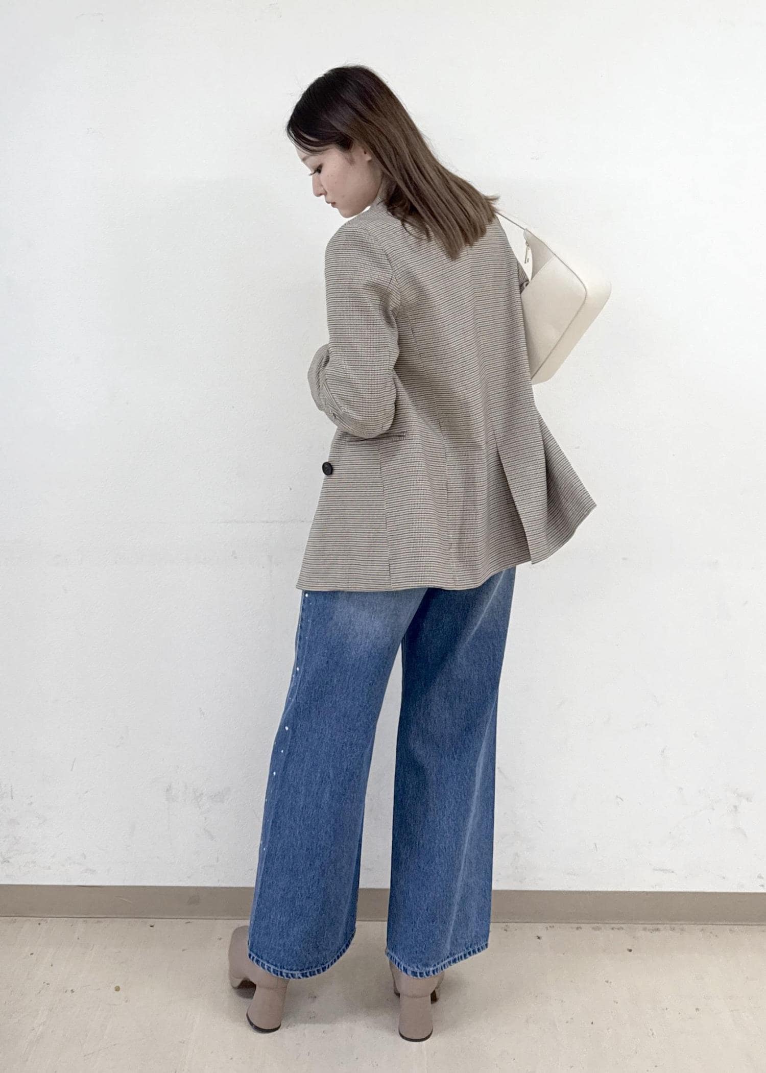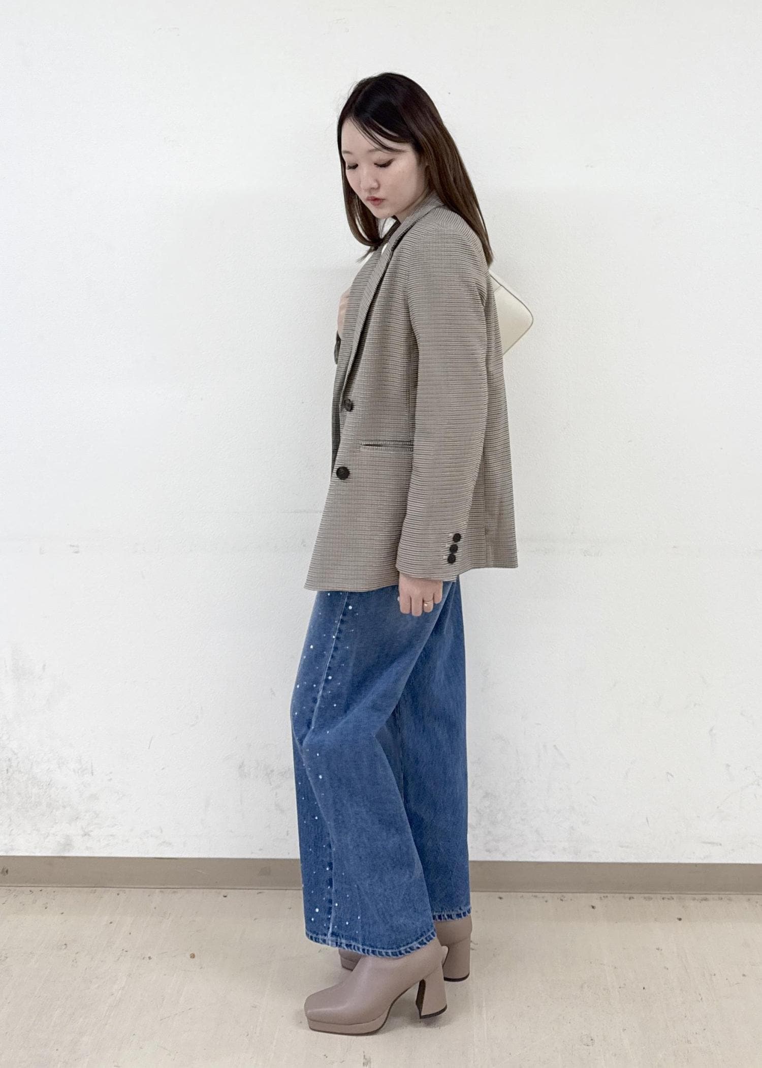 VIS【美easy】ウーリッシュダブルブレストテーラードジャケット【セットアップ対応/洗える】ベージュ系 / S¥8,899レビュー158cmの身長で、お尻が隠れるくらいの身丈でした。