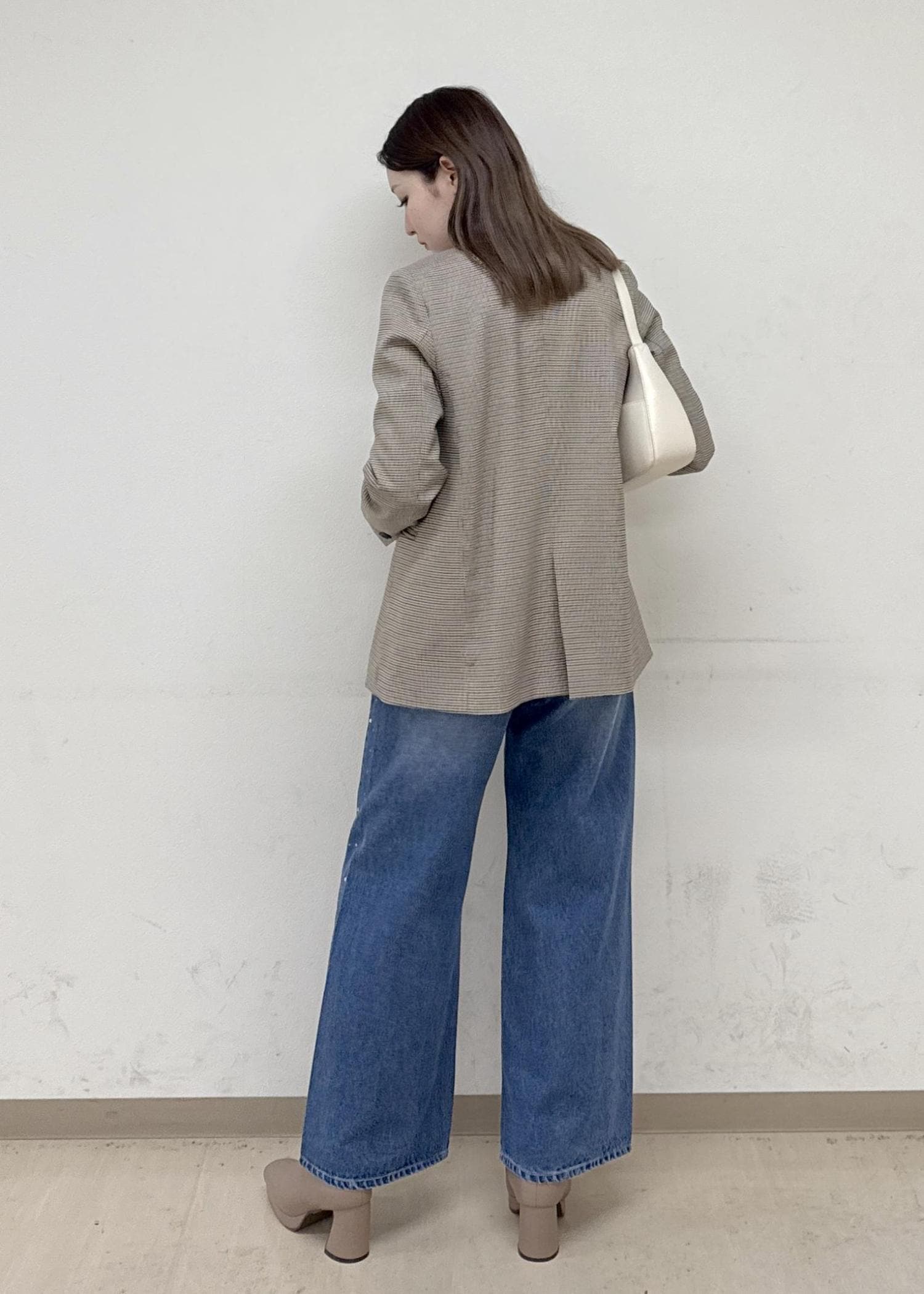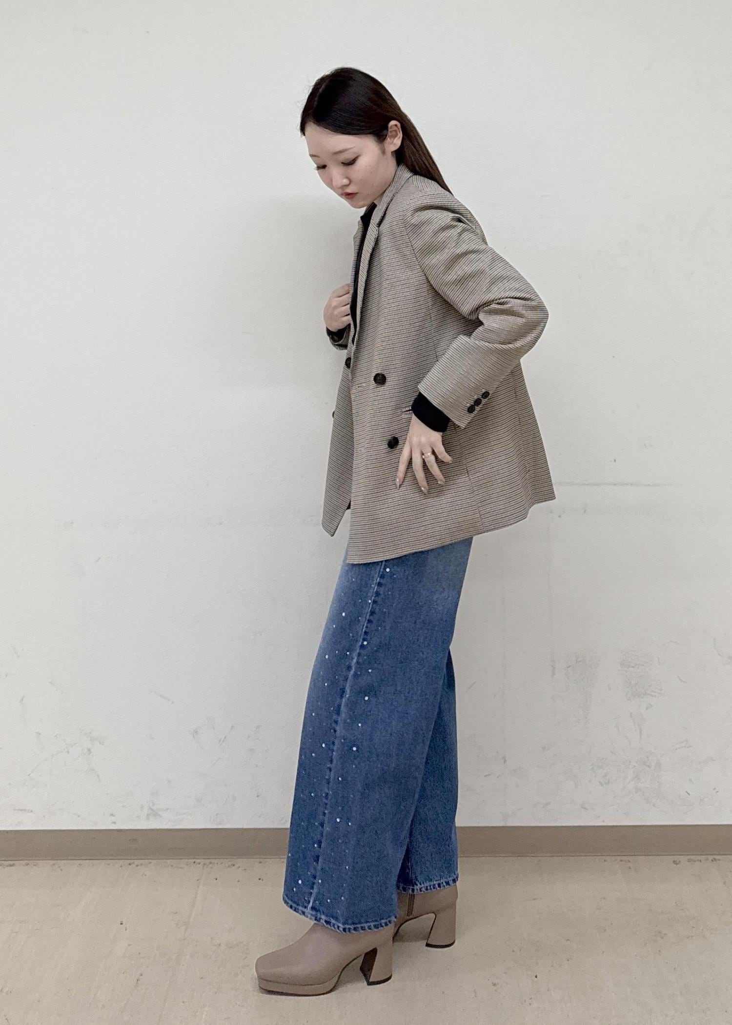 VIS【美easy】ウーリッシュダブルブレストテーラードジャケット【セットアップ対応/洗える】ベージュ系 / S¥8,899レビュー158cmの身長で、お尻が隠れるくらいの身丈でした。