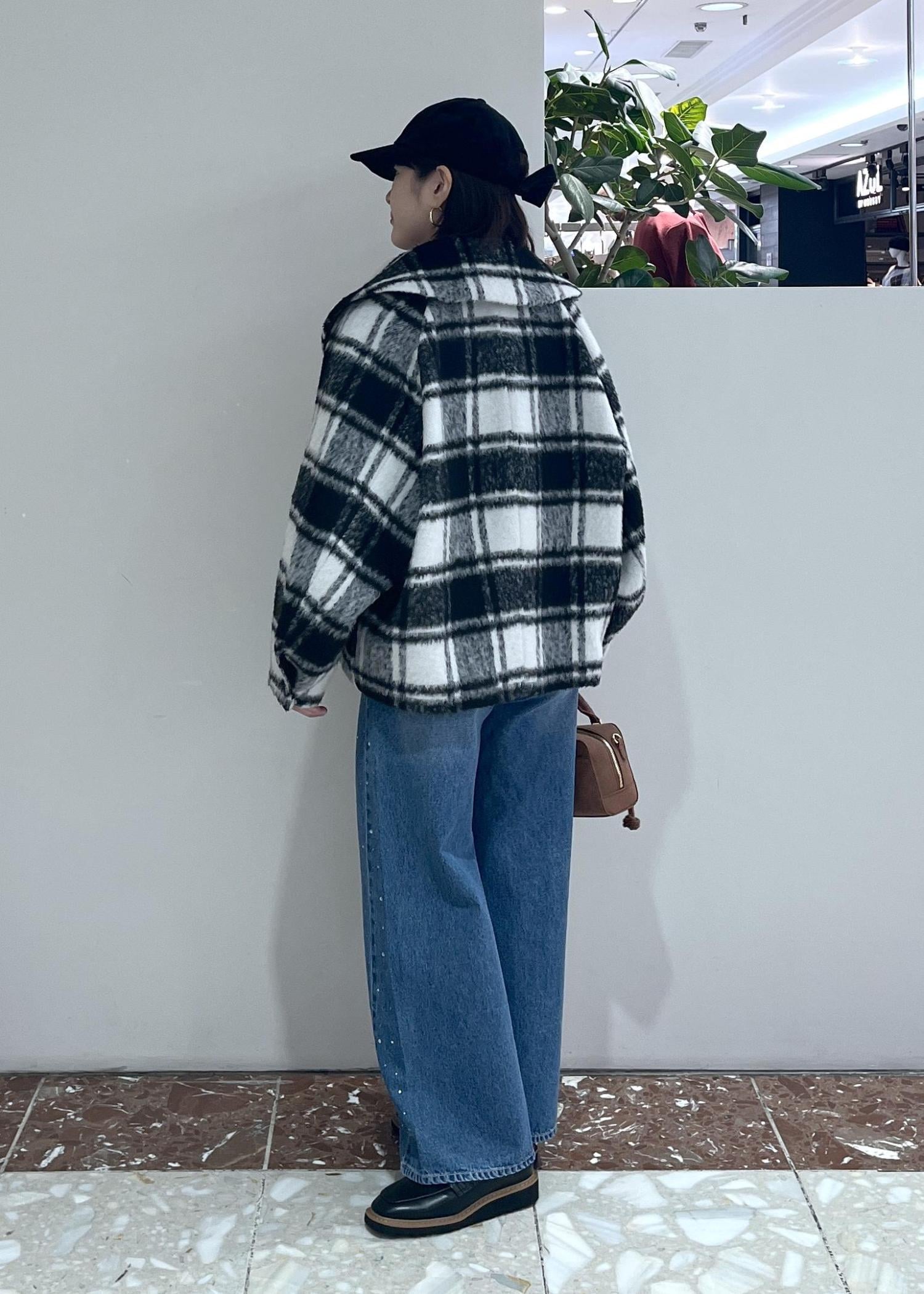 シャギー風が女性らしくチェック柄がポイントなのでシンプルコーデにもピッタリ◎ -