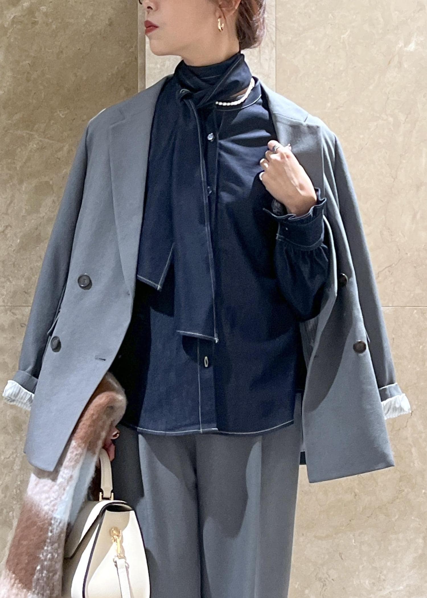 セットアップのスタイルにも品良く馴染む。