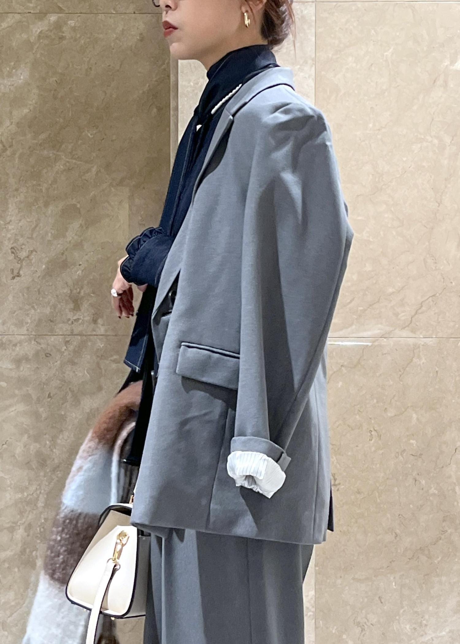 全体的にゆったりと余裕のあるサイズ感で、インナーは少し厚みのあるニットでも着られそう!
