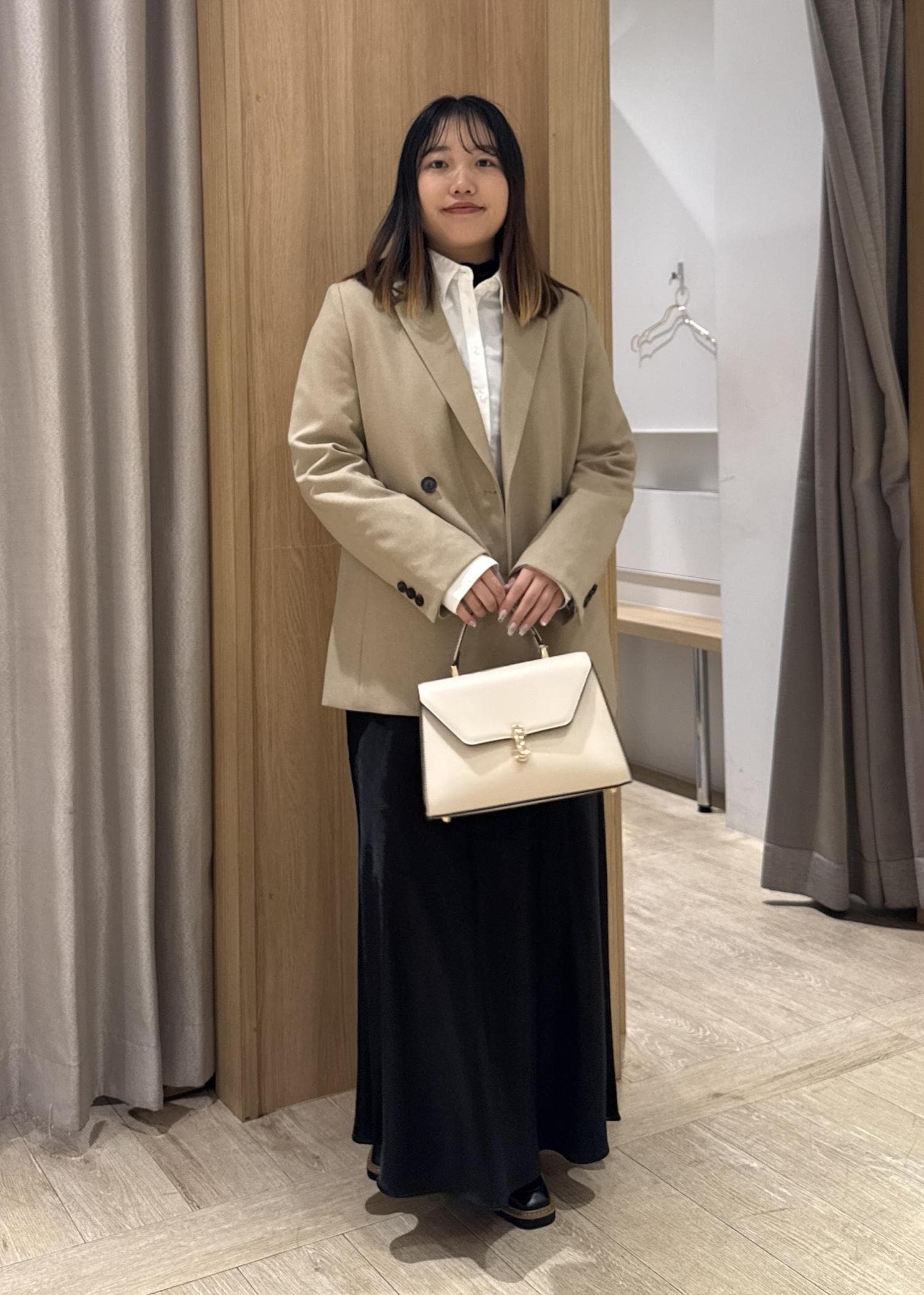 今回はオフスタイリングなので、少しゆったりしているMを着用しています。