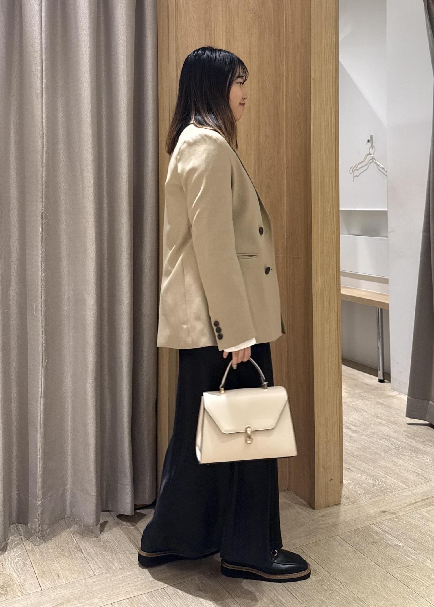 VIS【美easy】ウーリッシュダブルブレストテーラードジャケット【セットアップ対応/洗える】ベージュ / M¥8,899レビュー153cmの私ですが、袖感、肩幅のピッタリサイズはSサイズです。