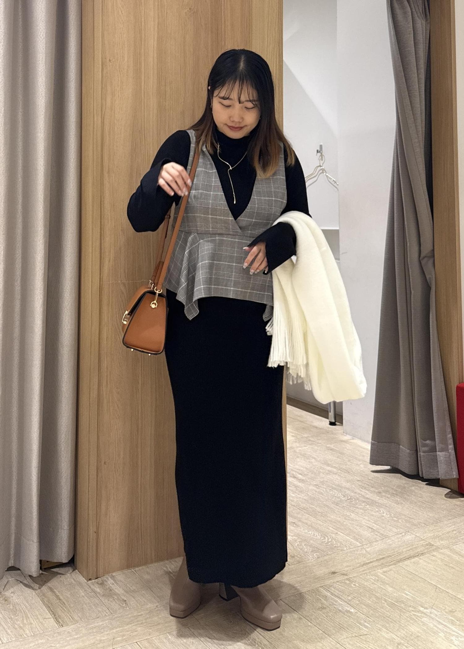 予約VISビスチェセットニットワンピースブラック系 / M¥9,999レビュー153cmの私ですが、Mサイズでくるぶしにかかるくらいの丈感でちょうど良かったです。