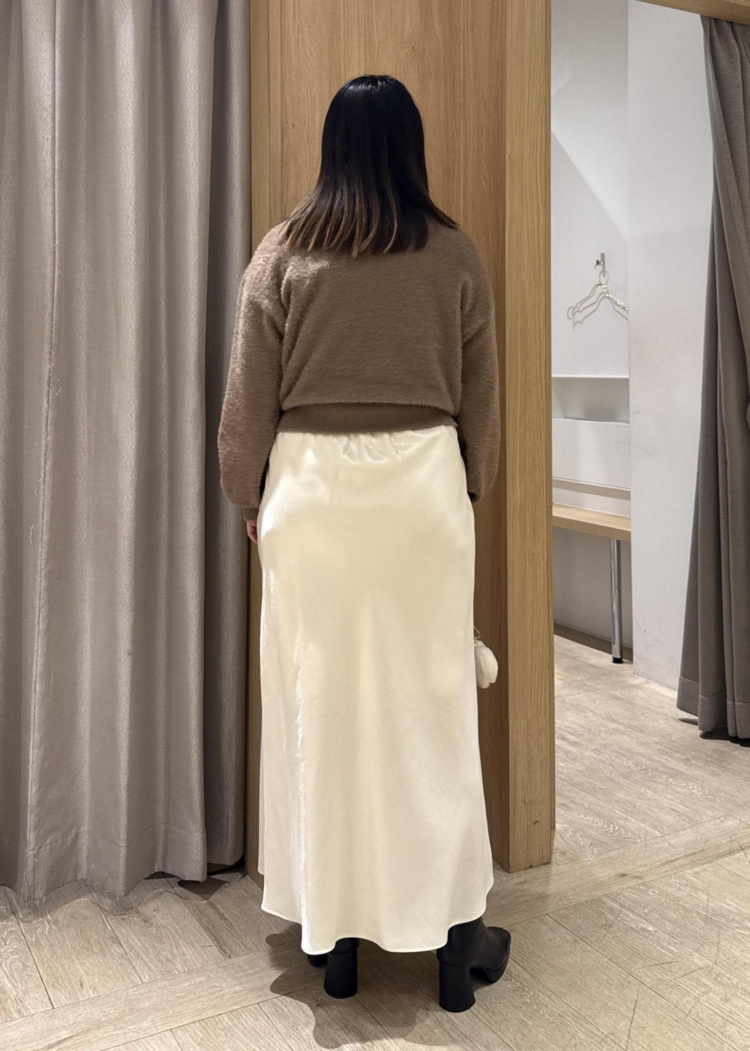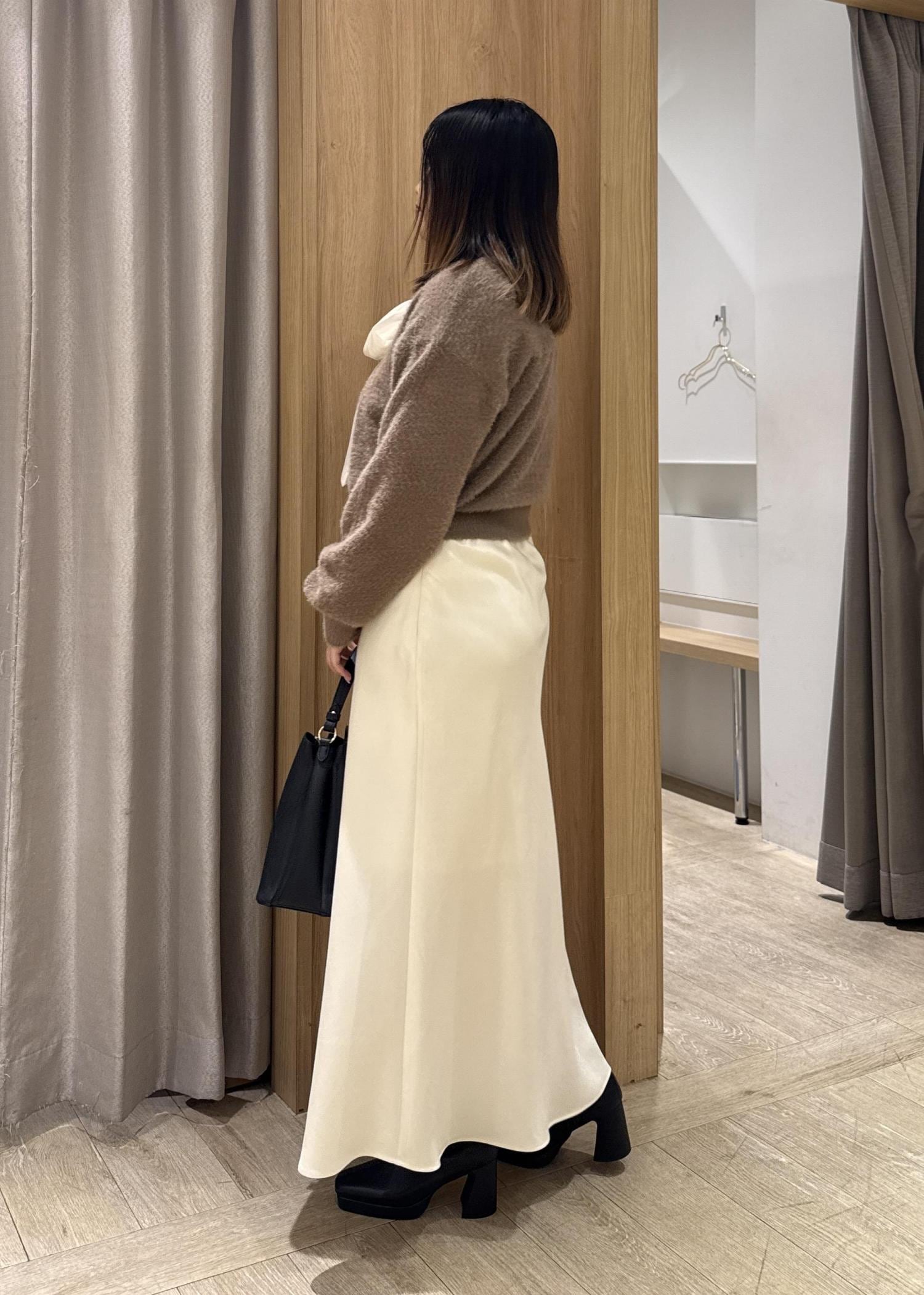 VISシャイニーナローフレアスカートキナリ / F¥6,589レビュー153cmの私ですが、足首がちょうど隠れるくらいの丈感でした。