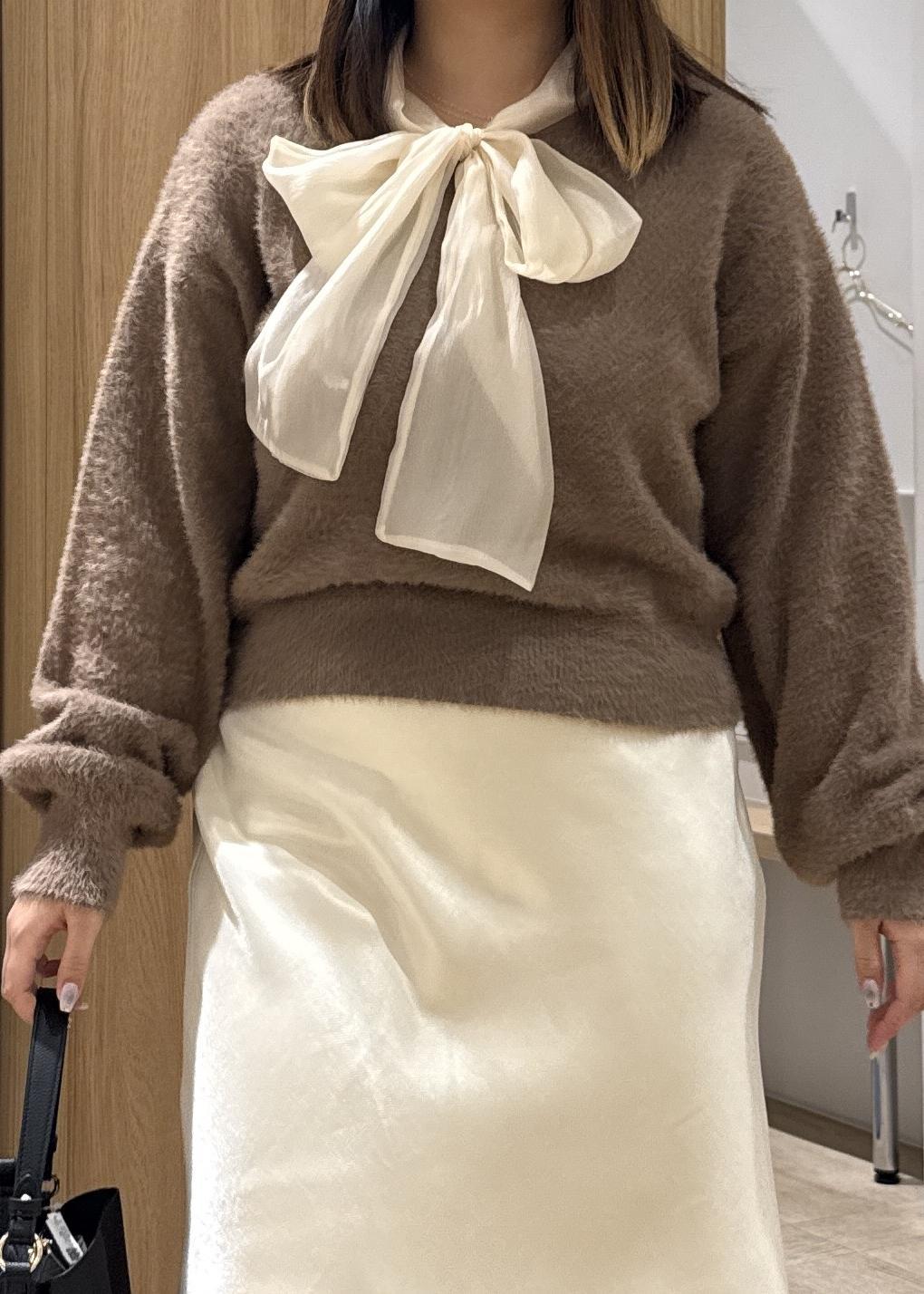 VISシアーボウタイリボン付きフェザーニットプルオーバー/2WAY・イージーケアキャメル / F¥6,589レビュー柔らかくてチクチクしないので着やすいです◎