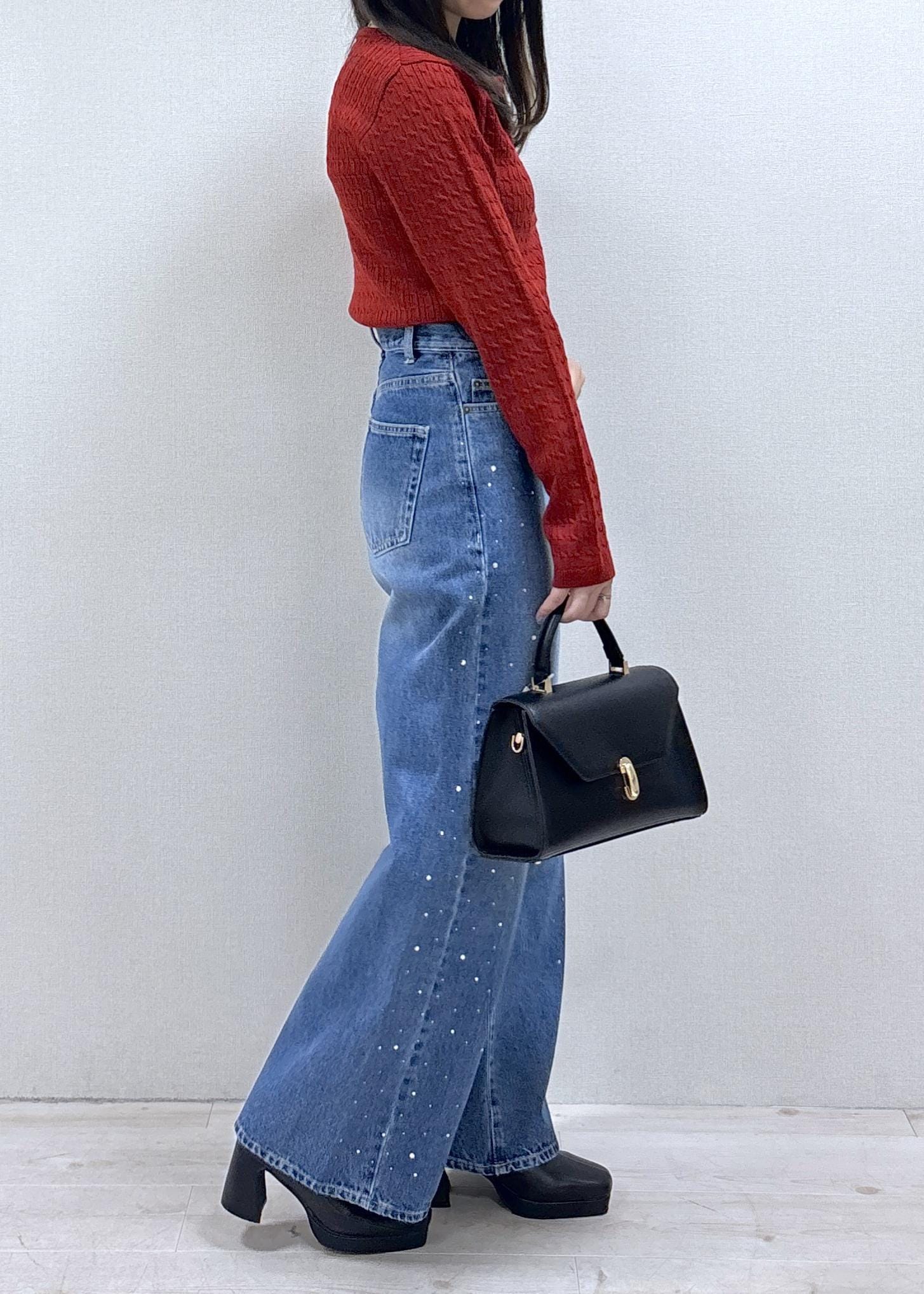 VISビジューデニムパンツブルー / M¥7,909レビューストーンが散らばっているため、着映えするアイテムになっています!シンプルなデザインのトップスにも合わせやすく着回ししやすいです!履いた時のシルエットがとてもきれいで、ブーツ合わせがお気に入りです!
