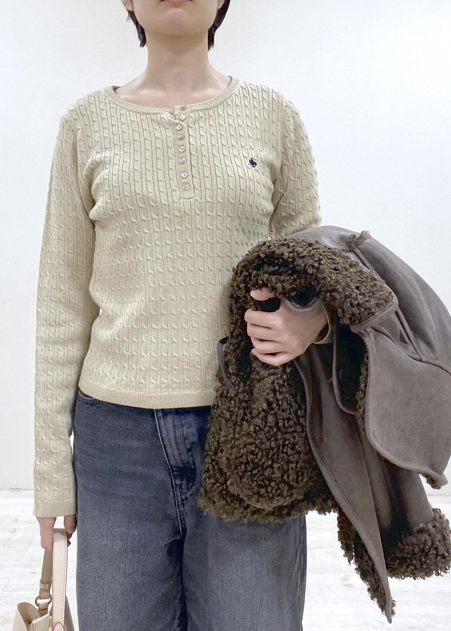 VIS【POLO BCS】VIS別注ヘンリーネックミニケーブルニットトップスオフホワイト / F¥6,600レビューヘンリーネックで首元も詰まりすぎず、スッキリ着ることが出来ます。