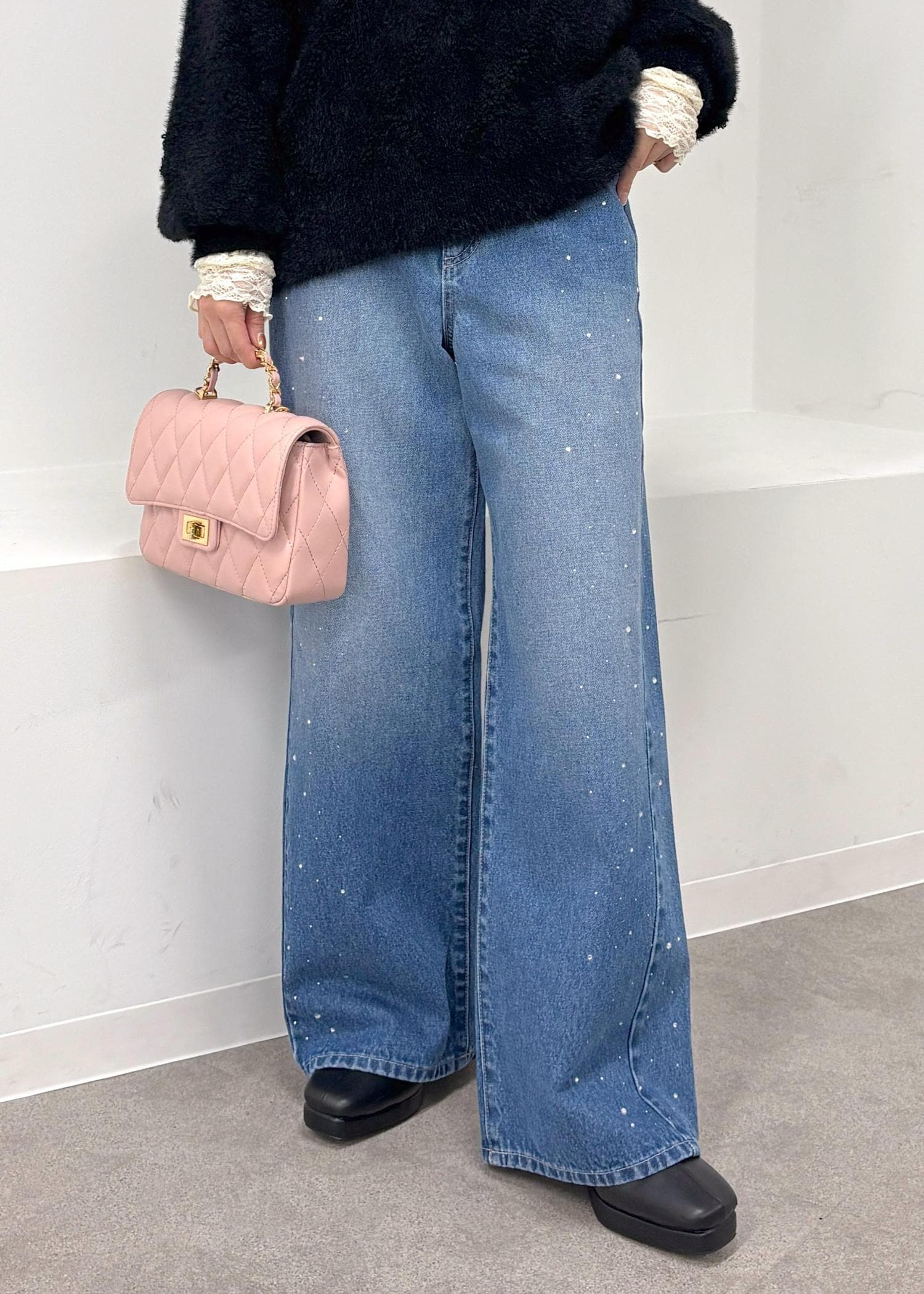 VISビジューデニムパンツブルー / M¥7,909レビューキラキラビジューが目を惹く大人可愛いデニム♪大きさの異なったビジューが正面サイドにあしらっている、カジュアルだけど女性らしい印象見えするデザイン。シルエットは広がり過ぎないストレートラインなので、コーディネートもバランスまとまります。厚過ぎず、薄過ぎずと通年使いやすい素材です◎サンプルの為Mサイズ着用、全体的にゆったりめ、着丈は足首くらいの長さでした。
