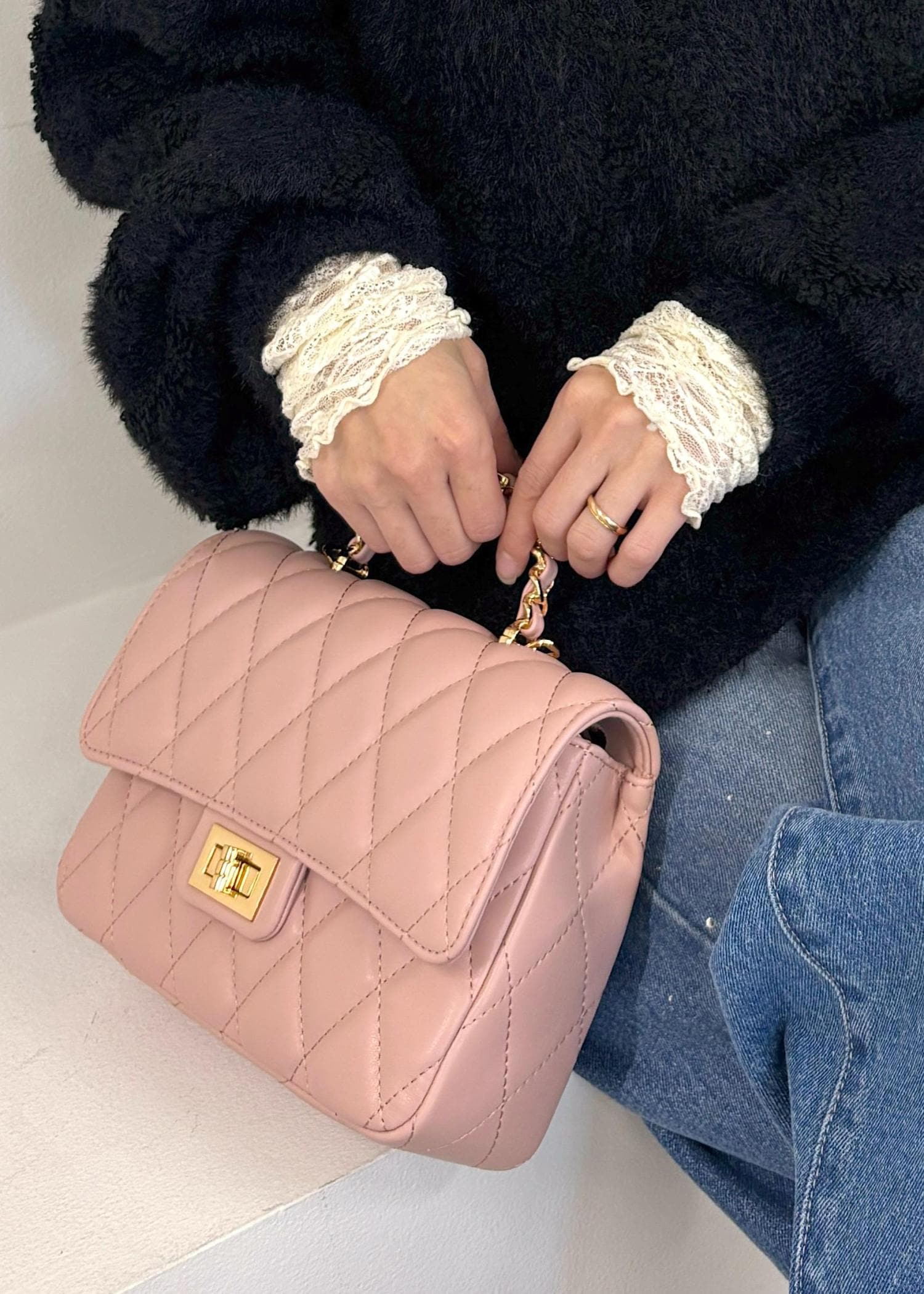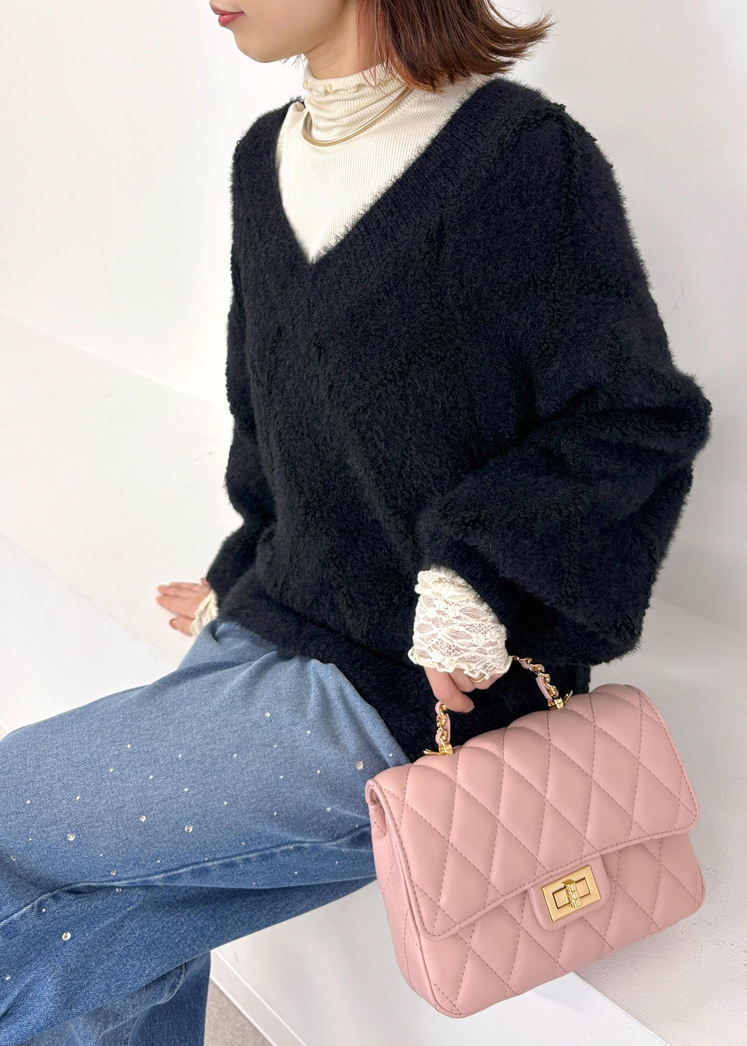 VISチェーンハンドルキルティングショルダーバッグ/2WAY・一部WEB限定カラーピンク / F¥6,919レビューぷっくりキルティングが大人可愛いバック♪昨年も好評のキルティングバックが今季はチェーンの持ち手が加わった女性らしさup見え◎手持ち、肩掛け、ショルダーとコーデによって幅広い合わせができるのも嬉しいポイント。携帯や折りたたみのお財布、ミニポーチなどが入るサイズ感です。