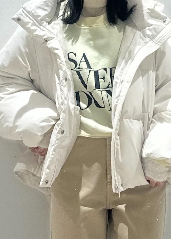 薄手の仕様で程良い透け感があり、袖口にはフェザー切り替えが施されているため、ジャケットの袖口からチラリと覗かせるスタイルがかわいい◎ -