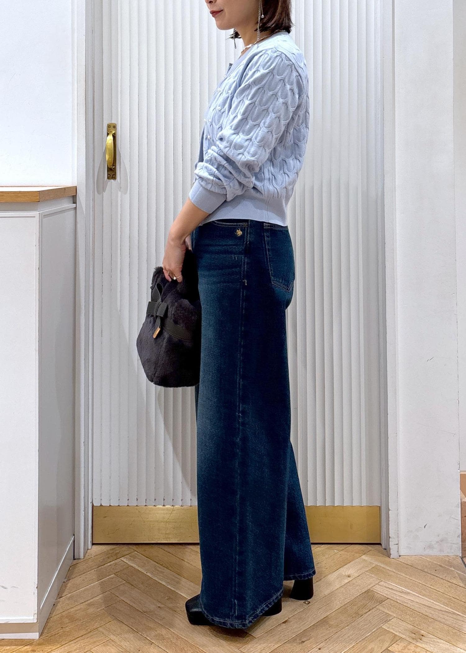 VISパールケーブルカーディガンサックス / F¥6,589レビュー今年らしいケーブルとパールが可愛いコンパクトなカーディガン。スッキリめの丈感で157cmの自身が着用すると腰に掛かる長さでした。伸縮性のあるモチッとした生地感で肉厚過ぎないので春まで長く着られるニットカーディガンです。