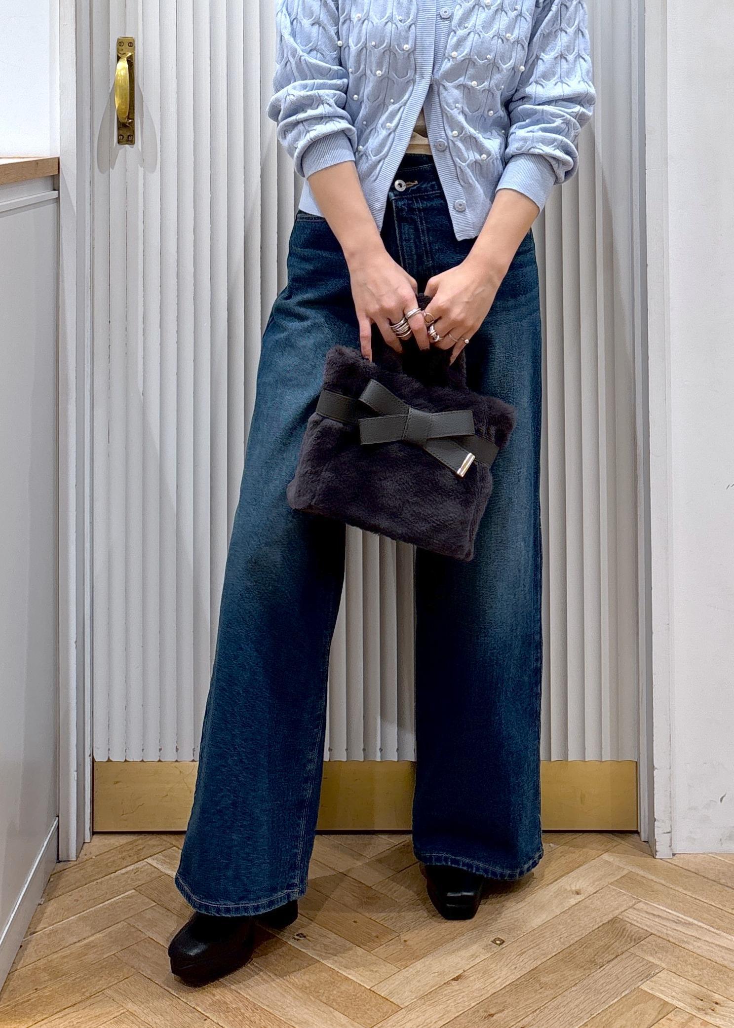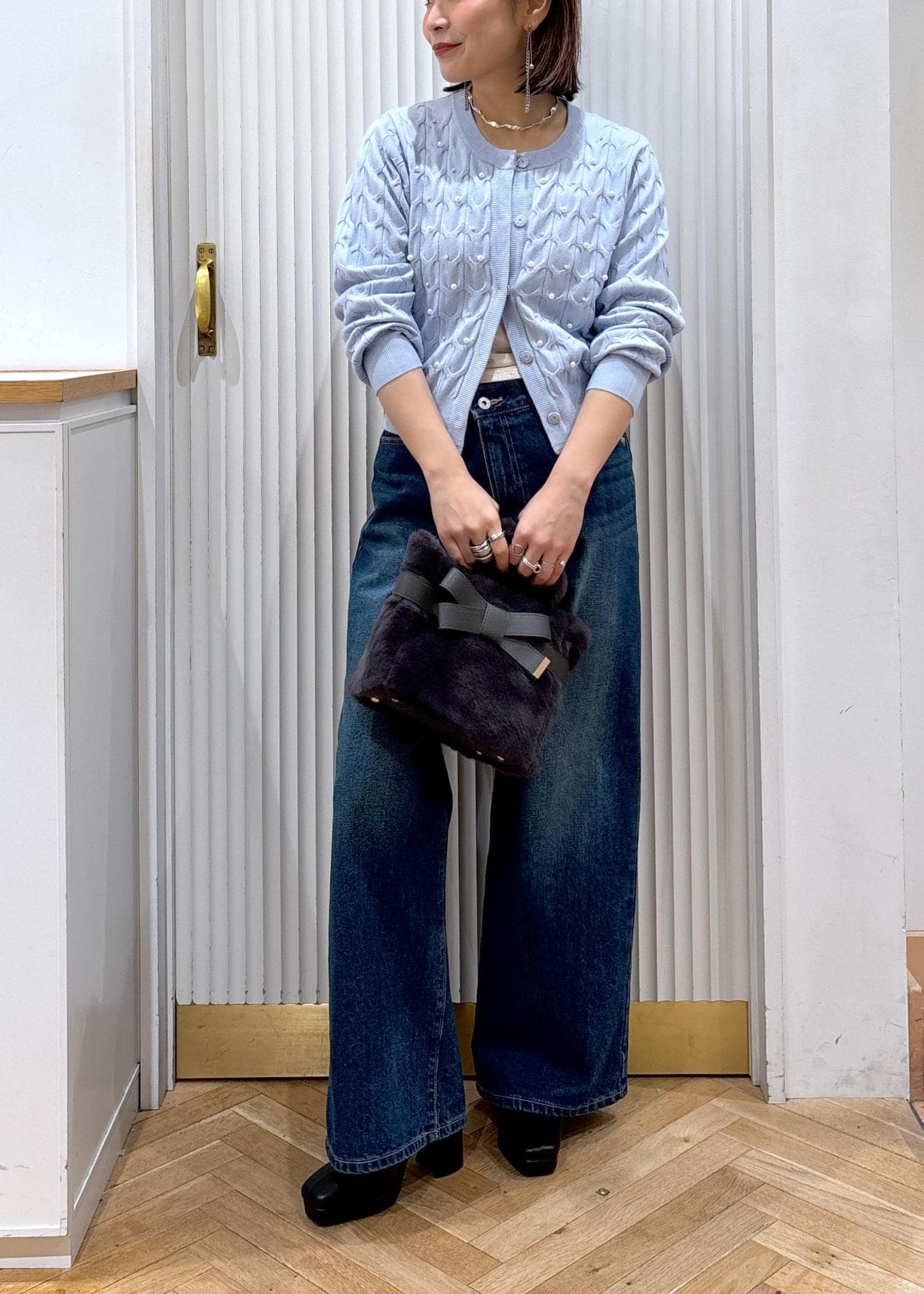 大人はシンプルにデニム合わせで、小物をアクセントに冬の甘めカジュアルコーデ♫