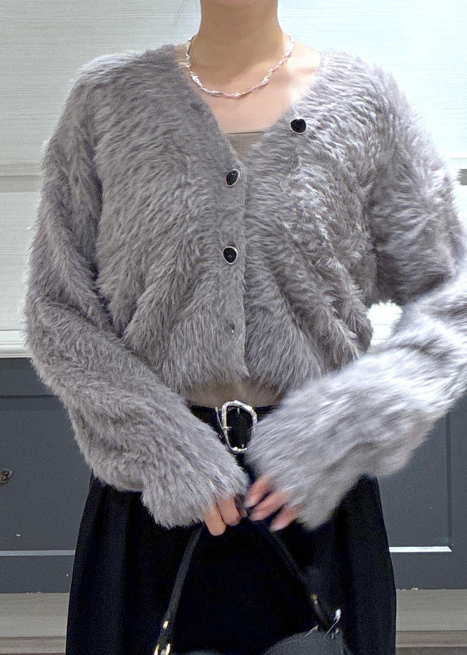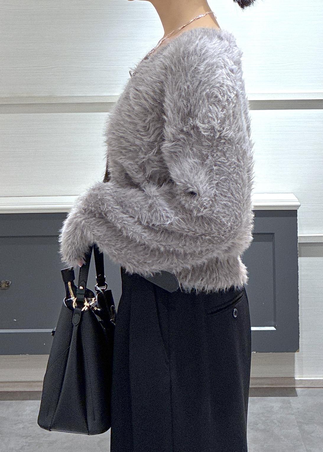 VISラビットファーVネックカーディガン/イージーケア・WEB限定カラーグレー系 / F¥5,929レビュー身長168センチでおへそより上の短丈です♪