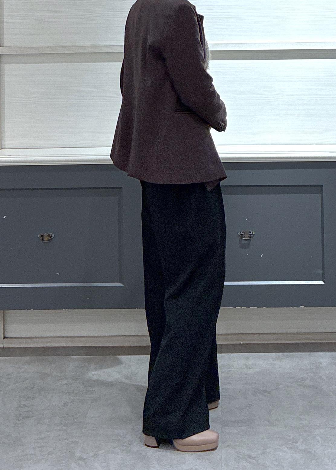 待望の美easyブラウンのジャケットをワイドパンツでカッコよく仕上げ、間違いない組み合わせにしました!