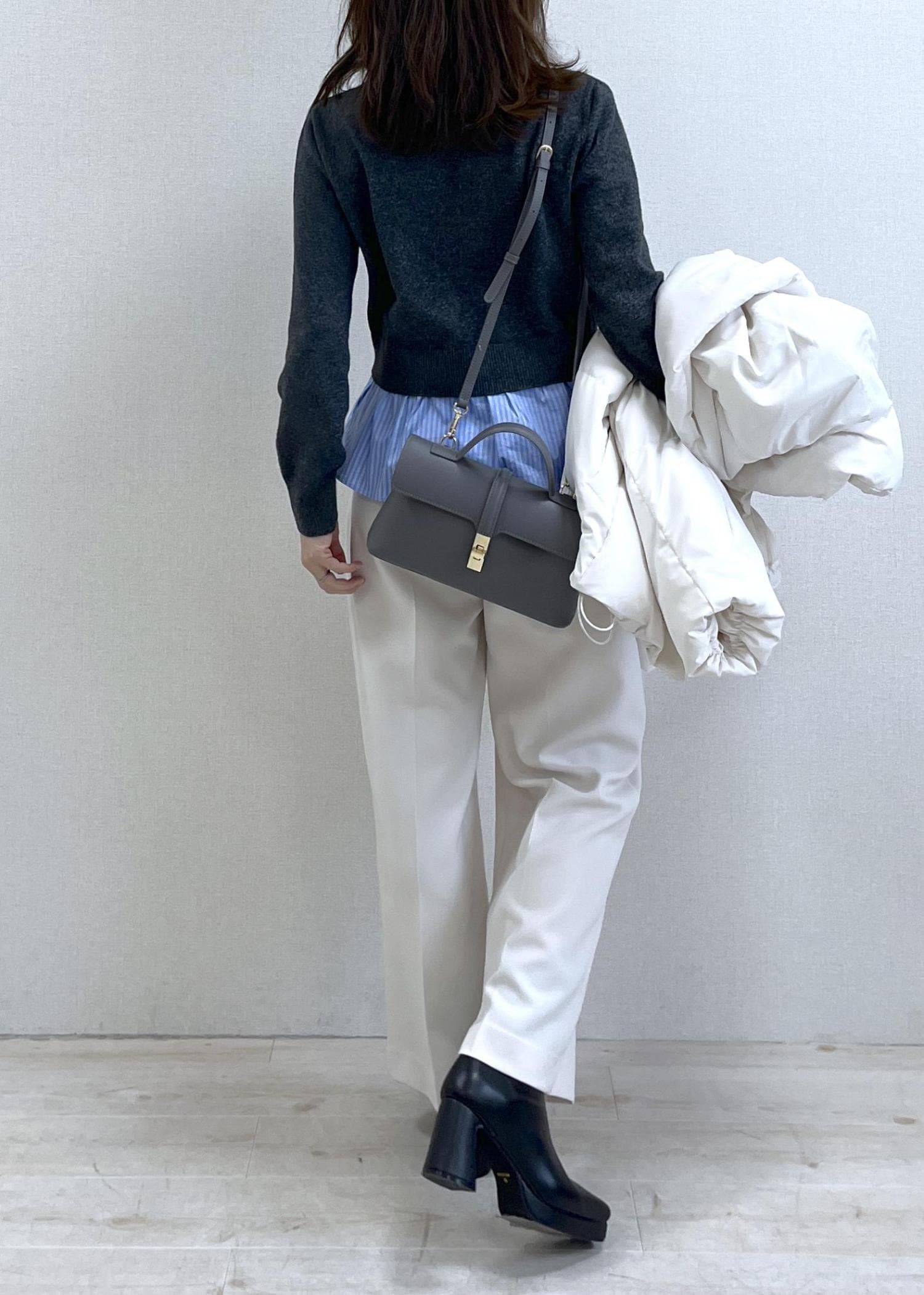きれいめなのにこなれるバランスで、オンオフどちらでも使える万能コーデです。