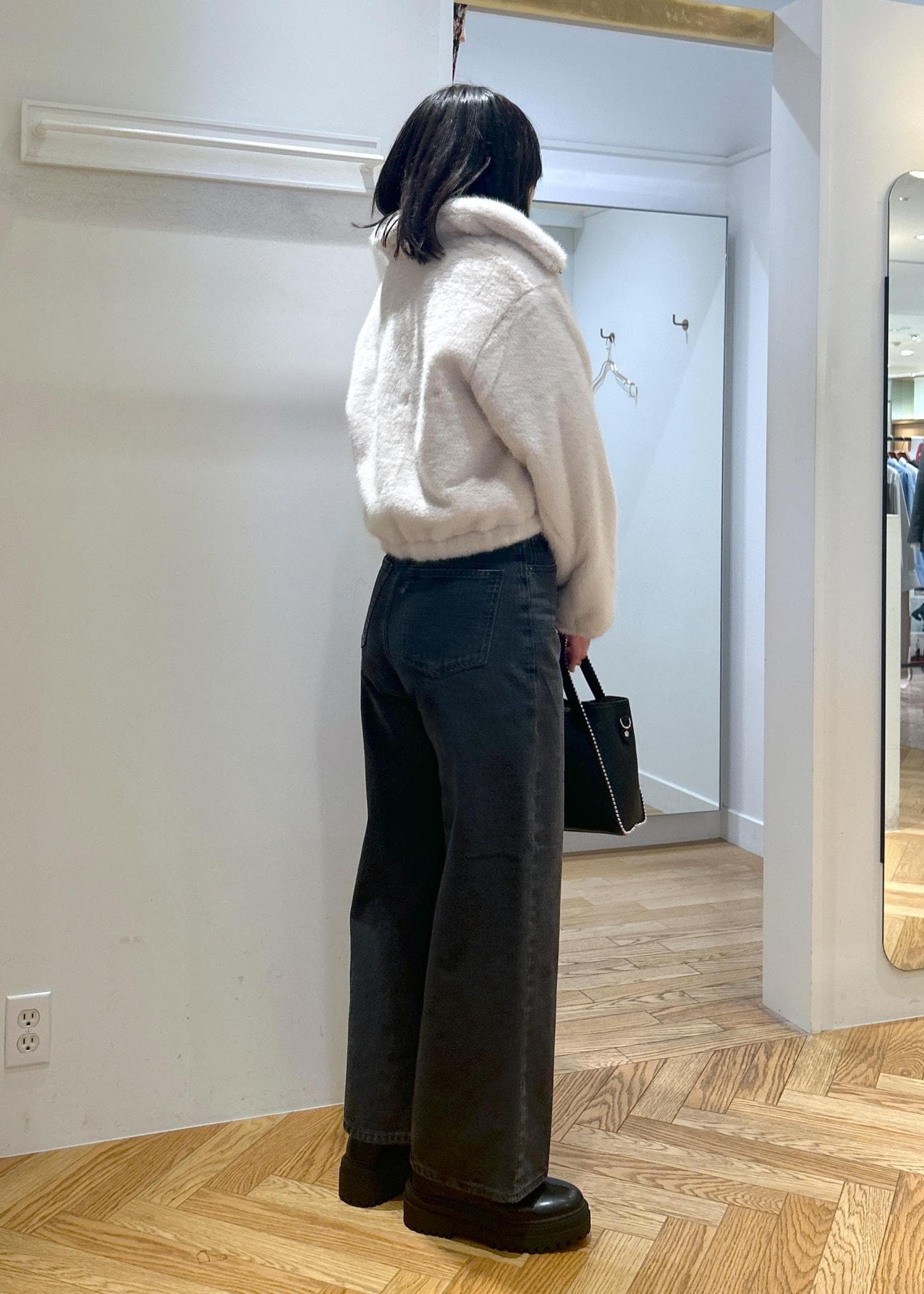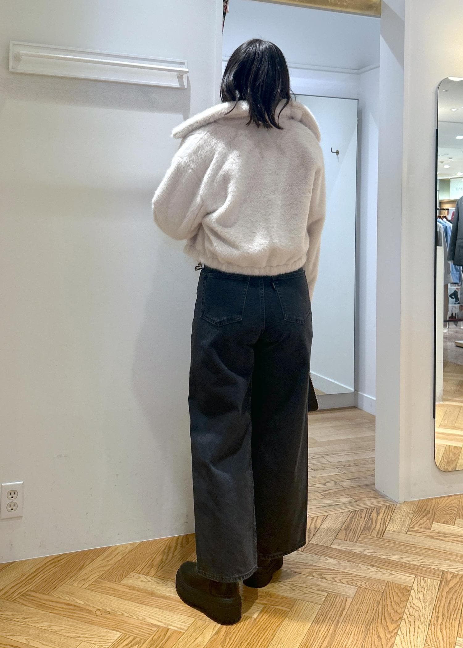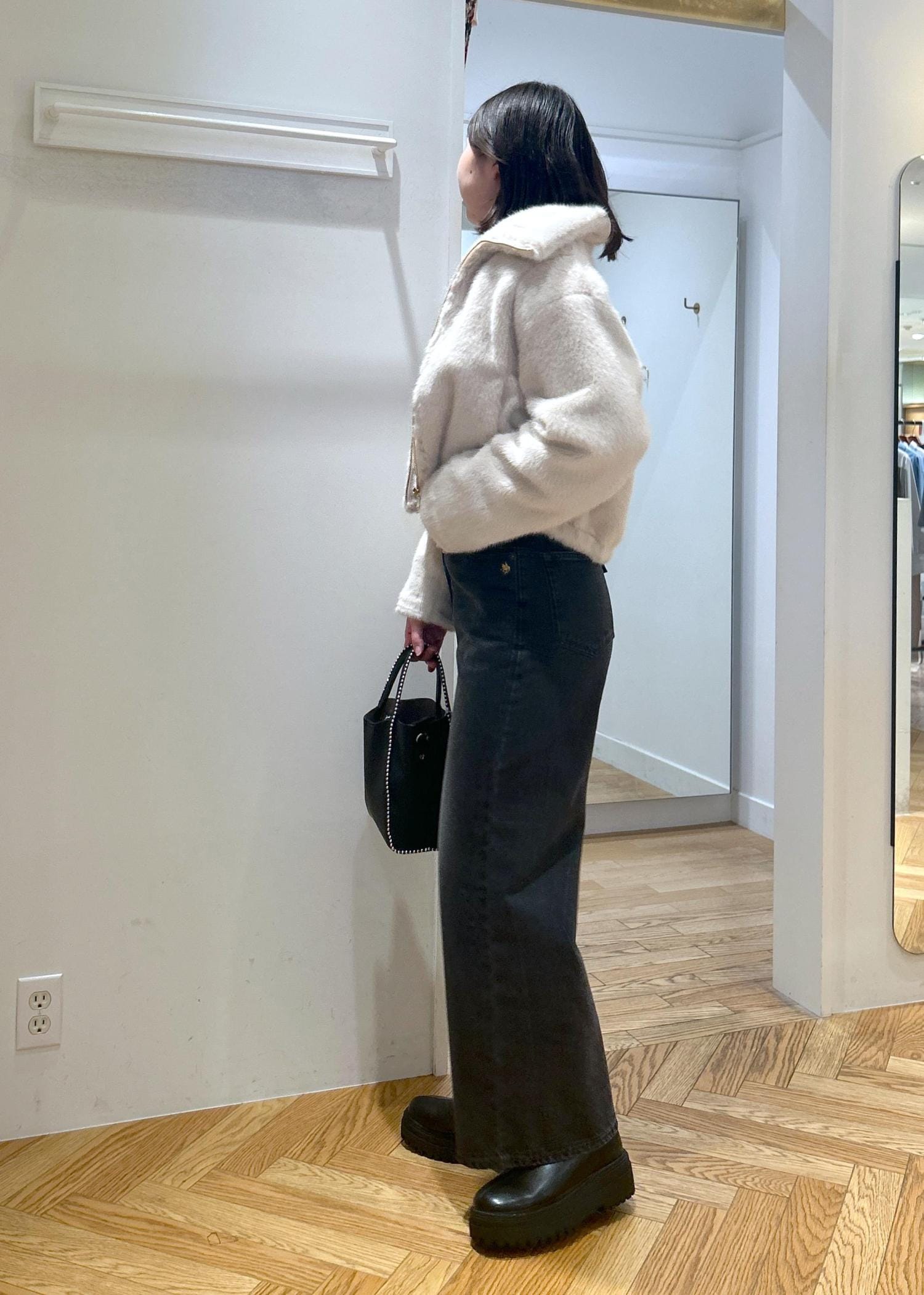 単丈のファージャケットに相性抜群のデニムを合わせたスタイルアップコーデです!!