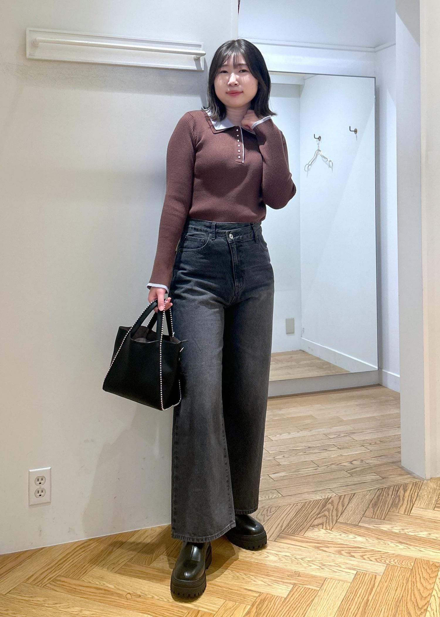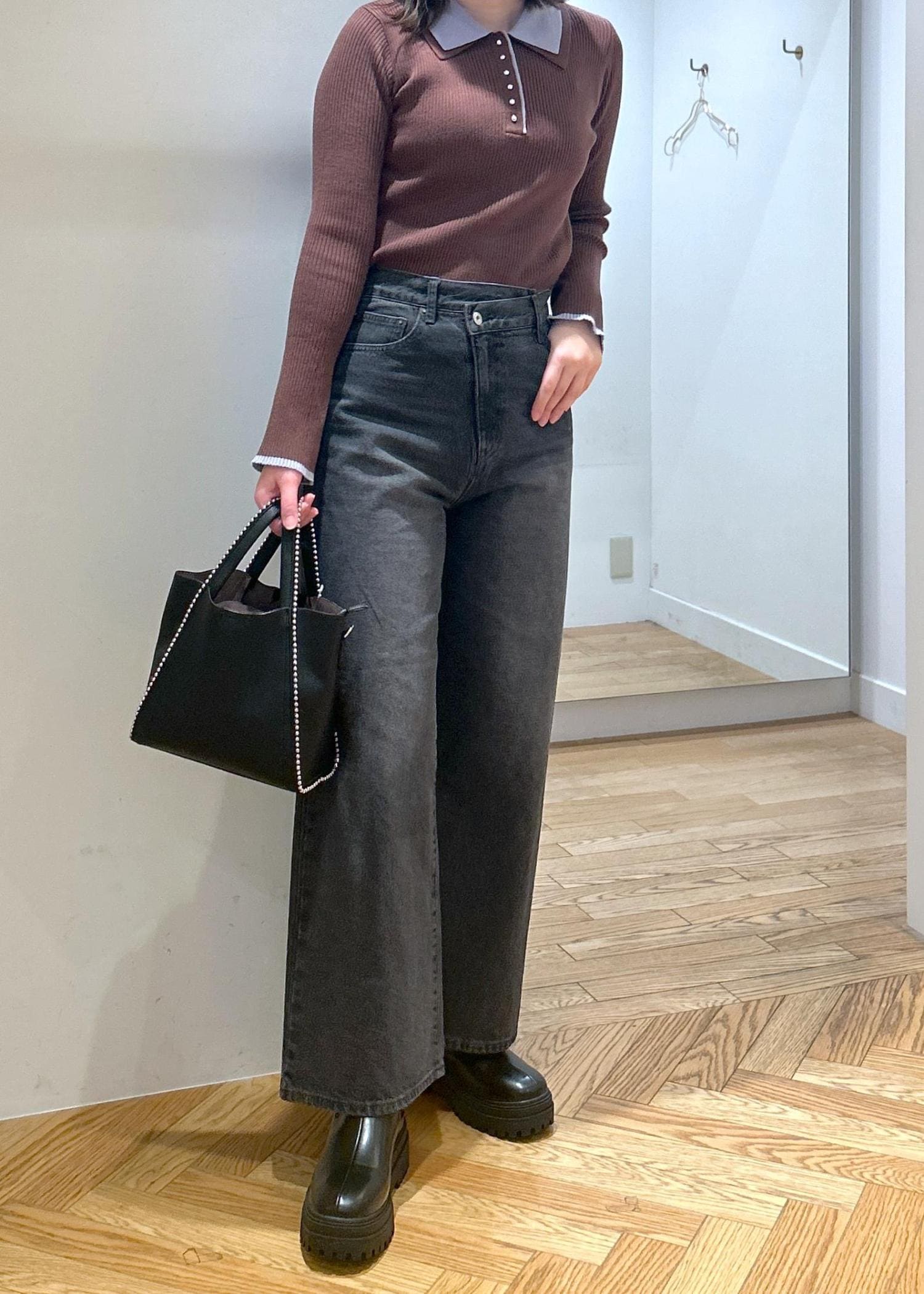 着丈が短めなので、ハイウエストのアイテムとも相性抜群です!スタイルアップします◎