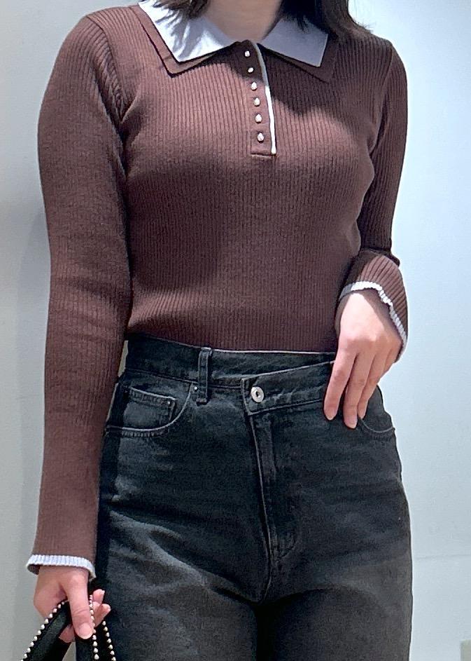 予約VISダブルカラーポロニットトップスブラウン / F¥5,929レビュー程よく身体にフィットして、シルエットを綺麗に見せてくれます。